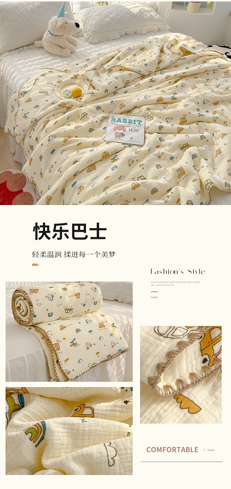 商品名称:芯恋 2025新款母婴级全棉皱皱纱儿童被双层纱夏被 快乐巴士
