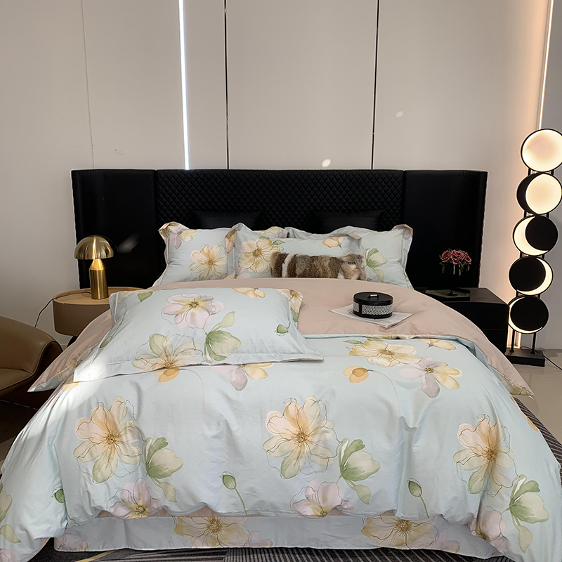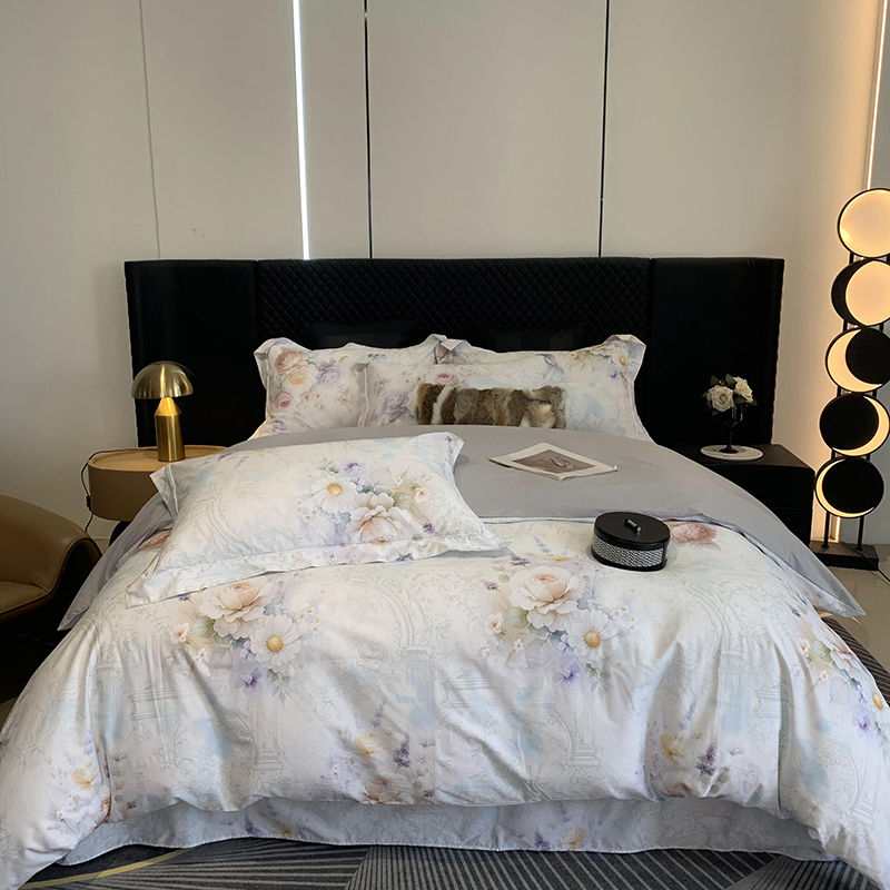 莱豫家纺 2025新款50支长绒棉数码印花四件套 芙音
