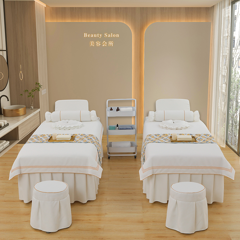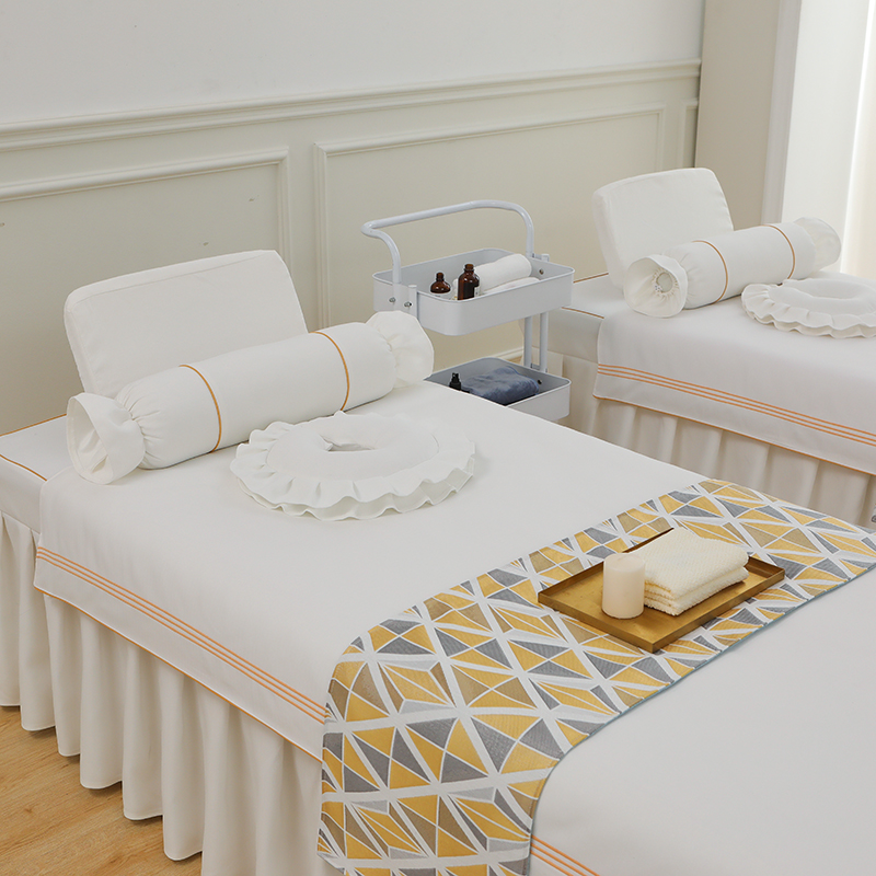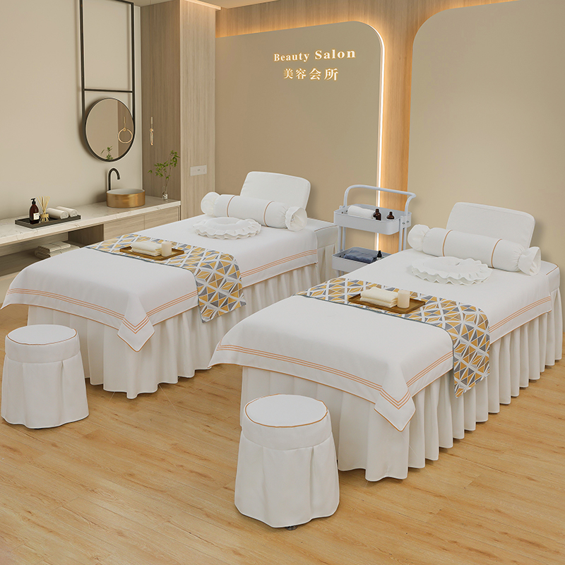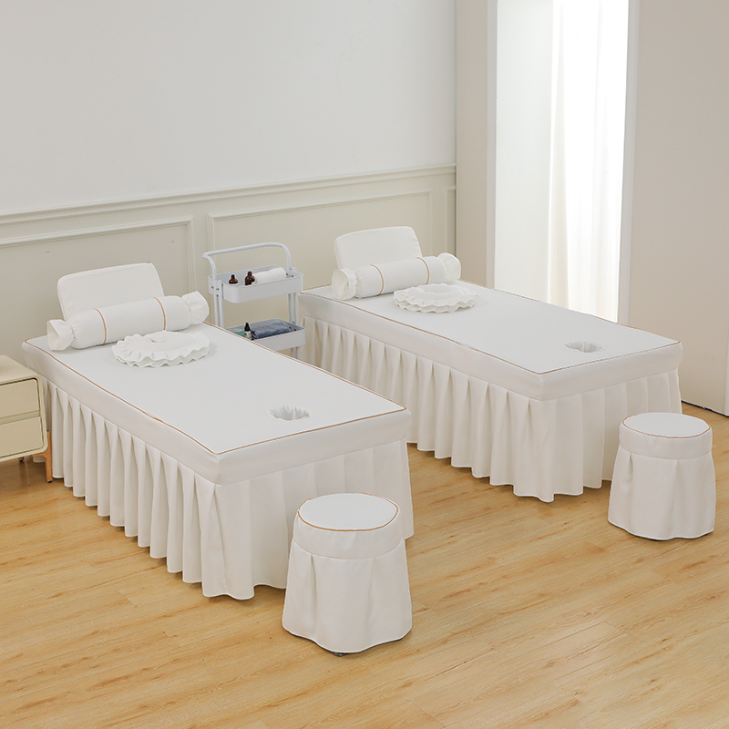 芙怡 2025春夏新款8026款棉麻绒美 容床罩-一字绣系列 一字绣-白色