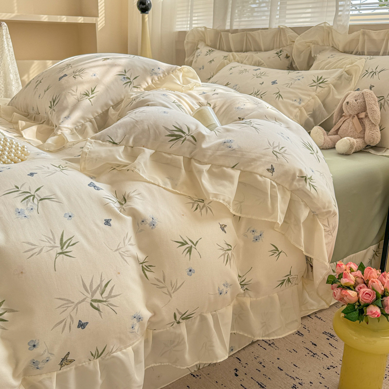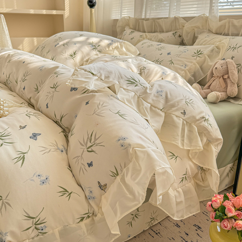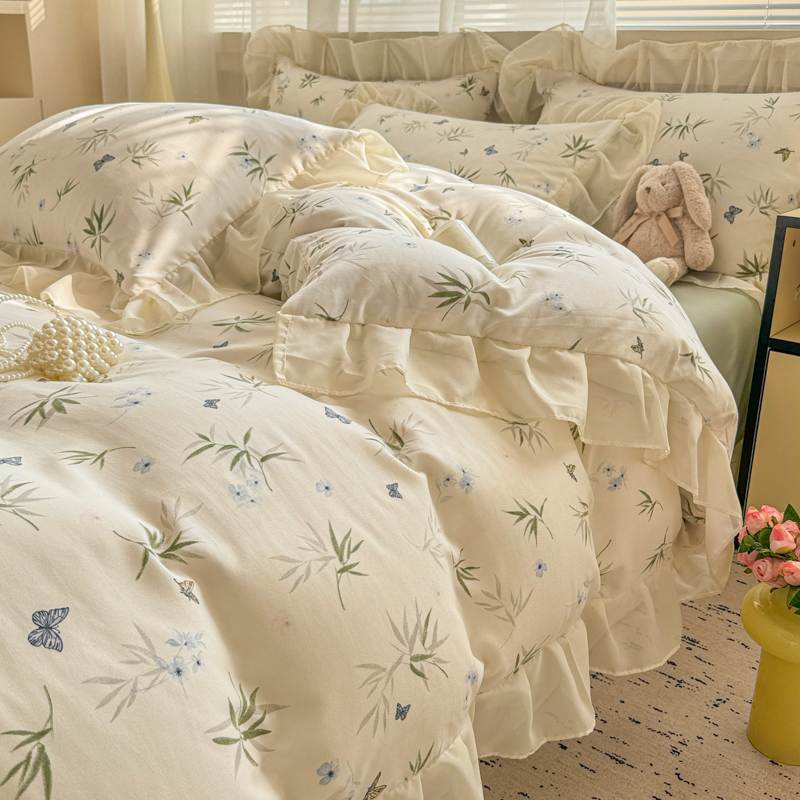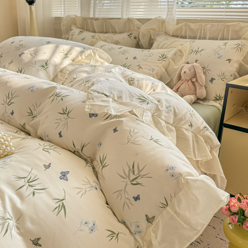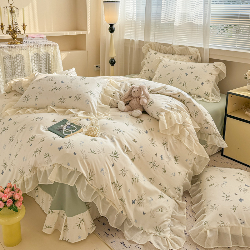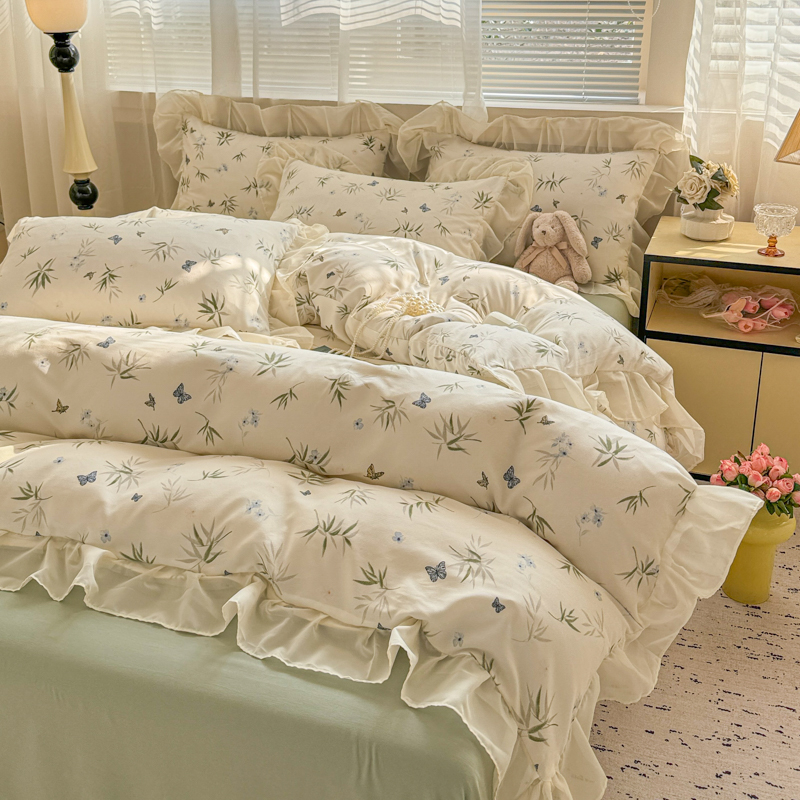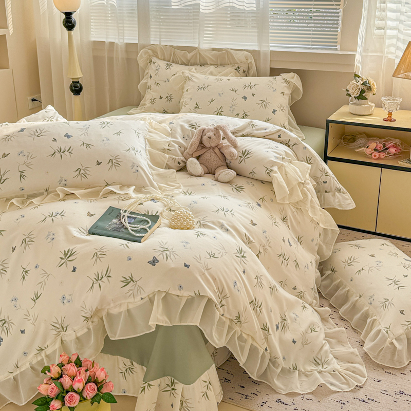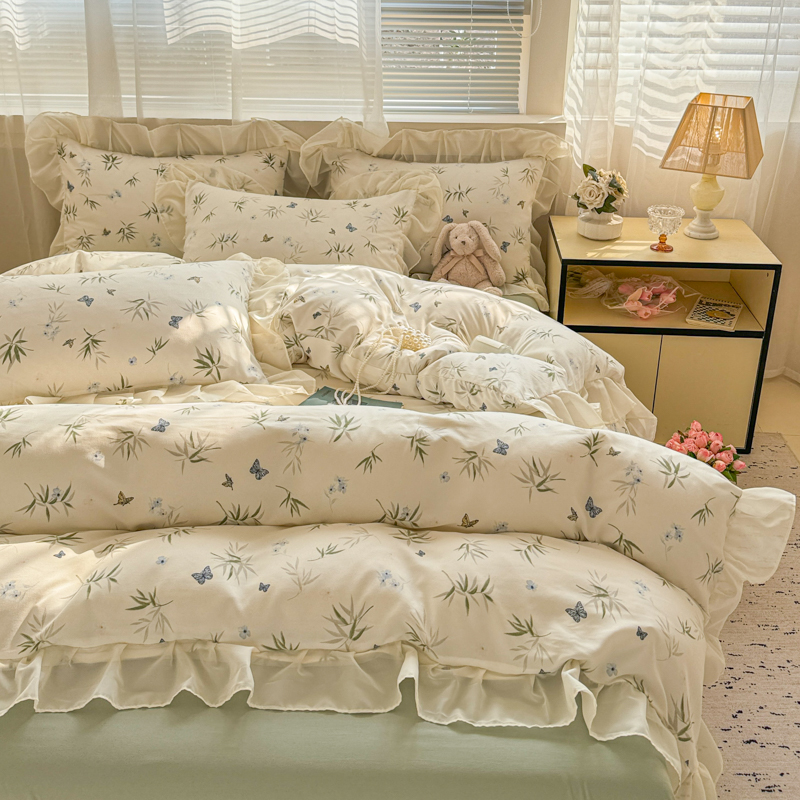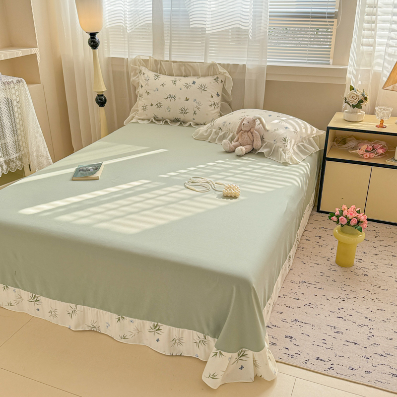 当前位置: 91家纺网 > 商品网购 > 床品套件 > 四件套 > 针织棉四件套 > 芯贝儿 2025新款提花针织水洗m双层纱床盖四件套 蝶舞绿
