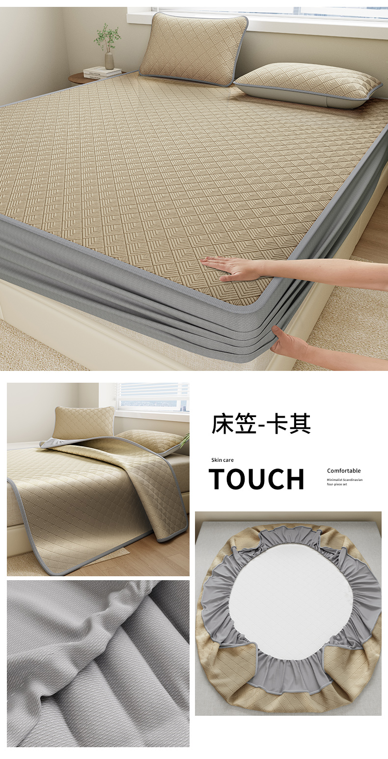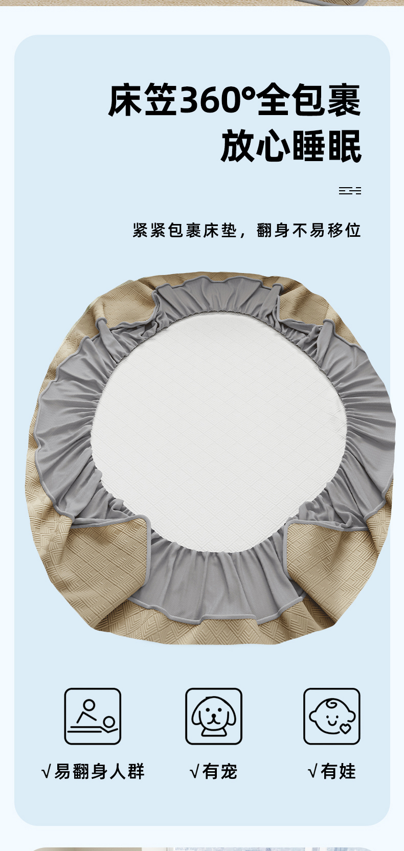 鑫姿席业 2025春夏新款A类抗菌凉感豆豆凉席-软床笠 床笠----卡其