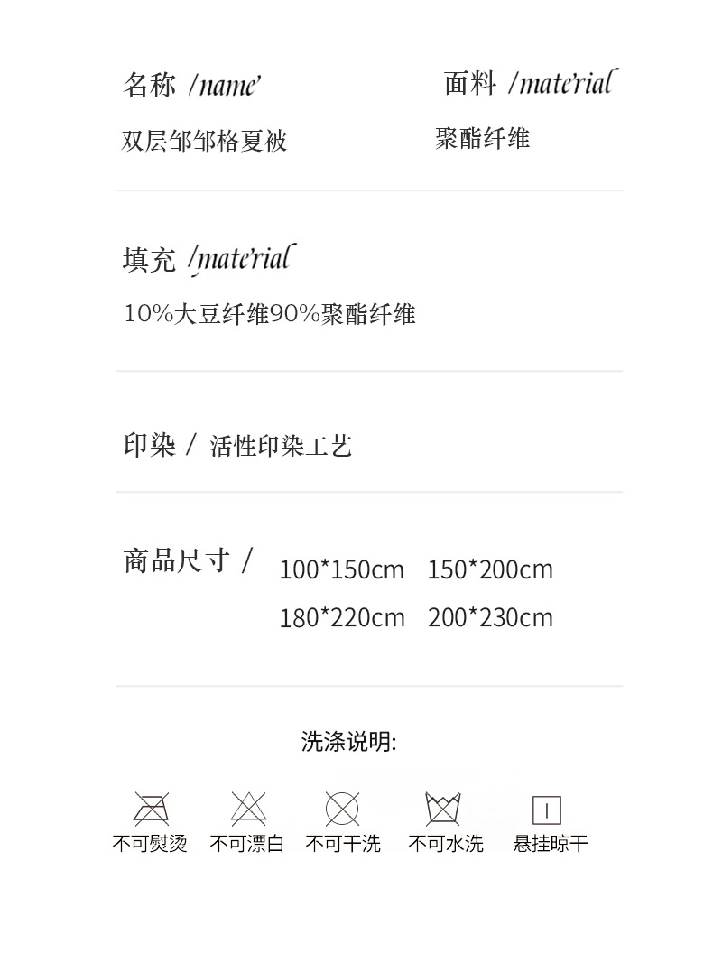商品名称:(总)子由家居 2025新款双层邹邹格大豆纤维夏被被子夏被