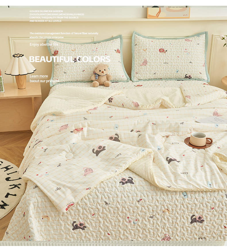 • 91家纺网 家纺一手货源 找家纺 子由家居 2025新款凉感丝豆豆夏被四件套 凉感豆豆被-清新花园