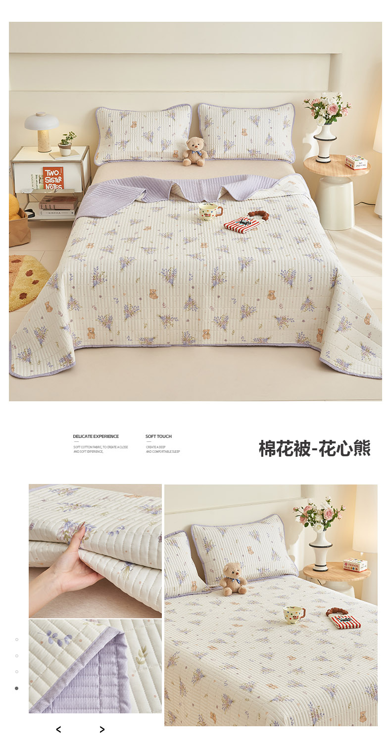 子由家居 2025新款纯棉印花夹棉床盖 棉花被-花艺