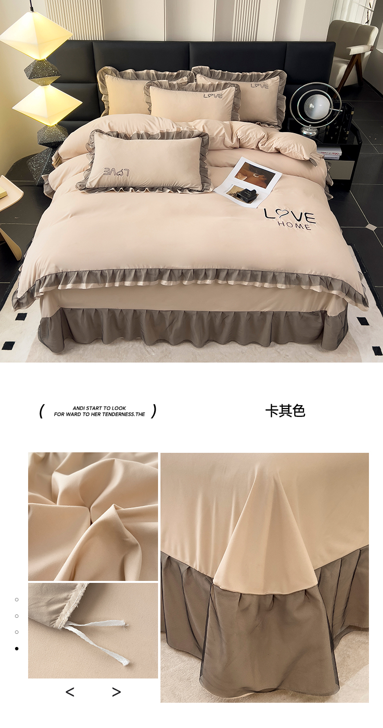 找底底 2025新款亲肤舒适云朵棉刺绣四件套 卡其