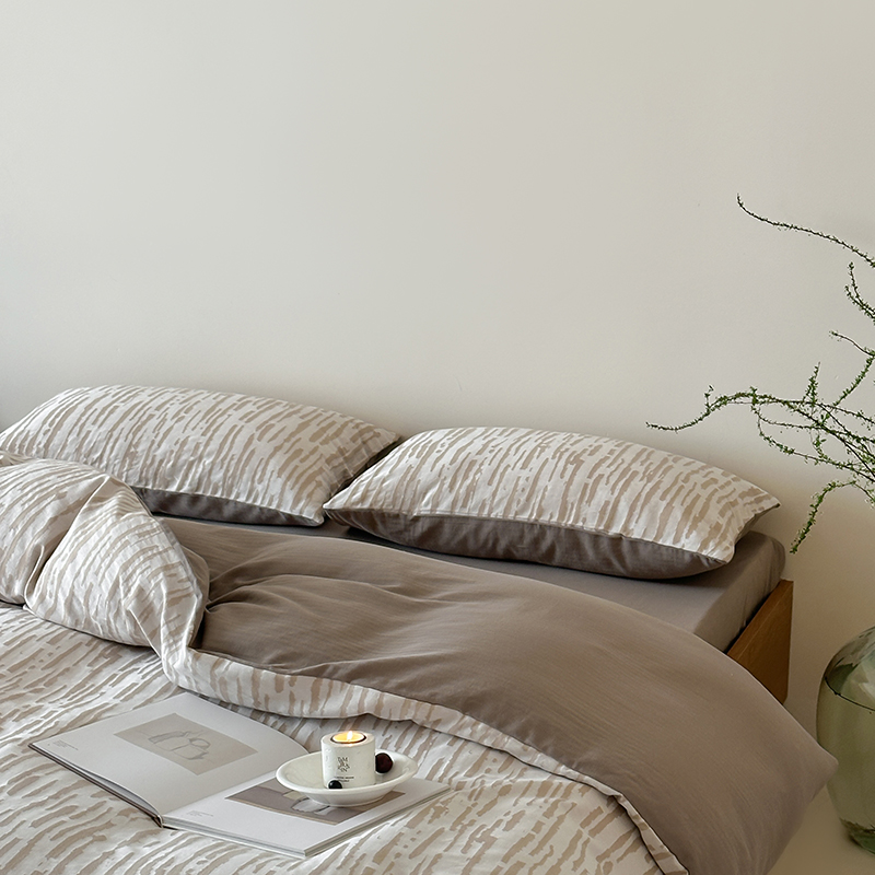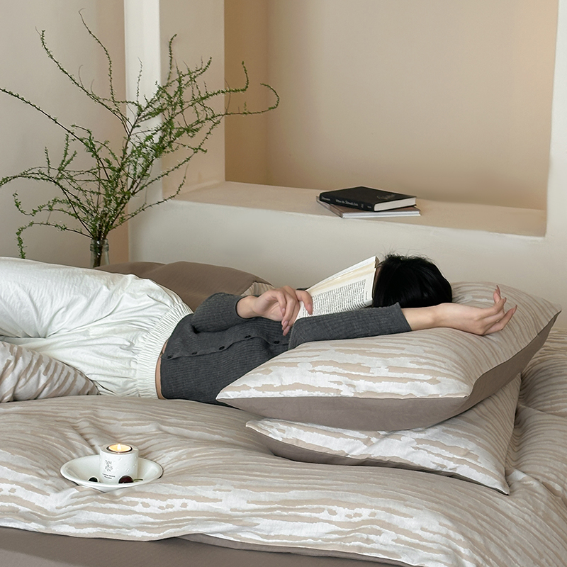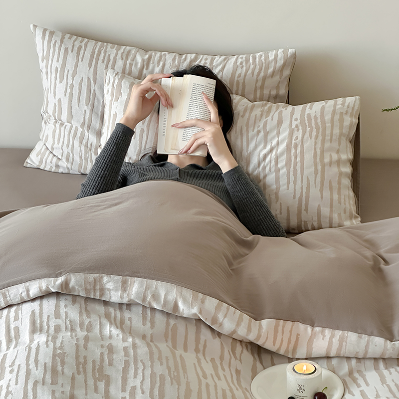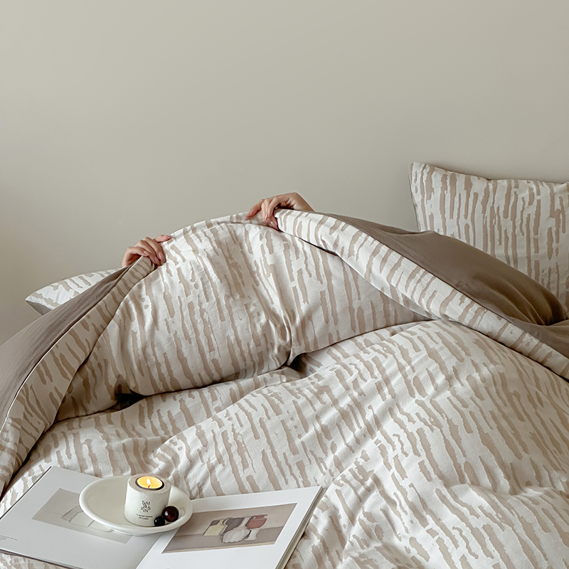 商品名称:梦享生活家居 2025新款色织三层提花人字纹面料四件套-斑驳系列 斑驳米咖