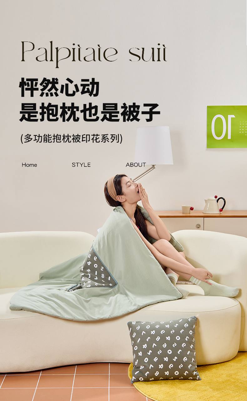 (总)多米家居 2025新款多功能印花嗖系抱枕被,暗苔绿,丹宁蓝,矿石黑,小鸡黄,杏仁咖,云水灰