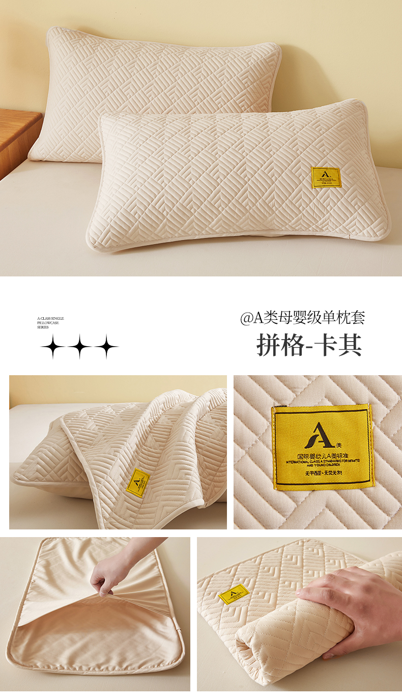 商品名称:居眠2025新款夹棉防水枕套 拼格-卡其