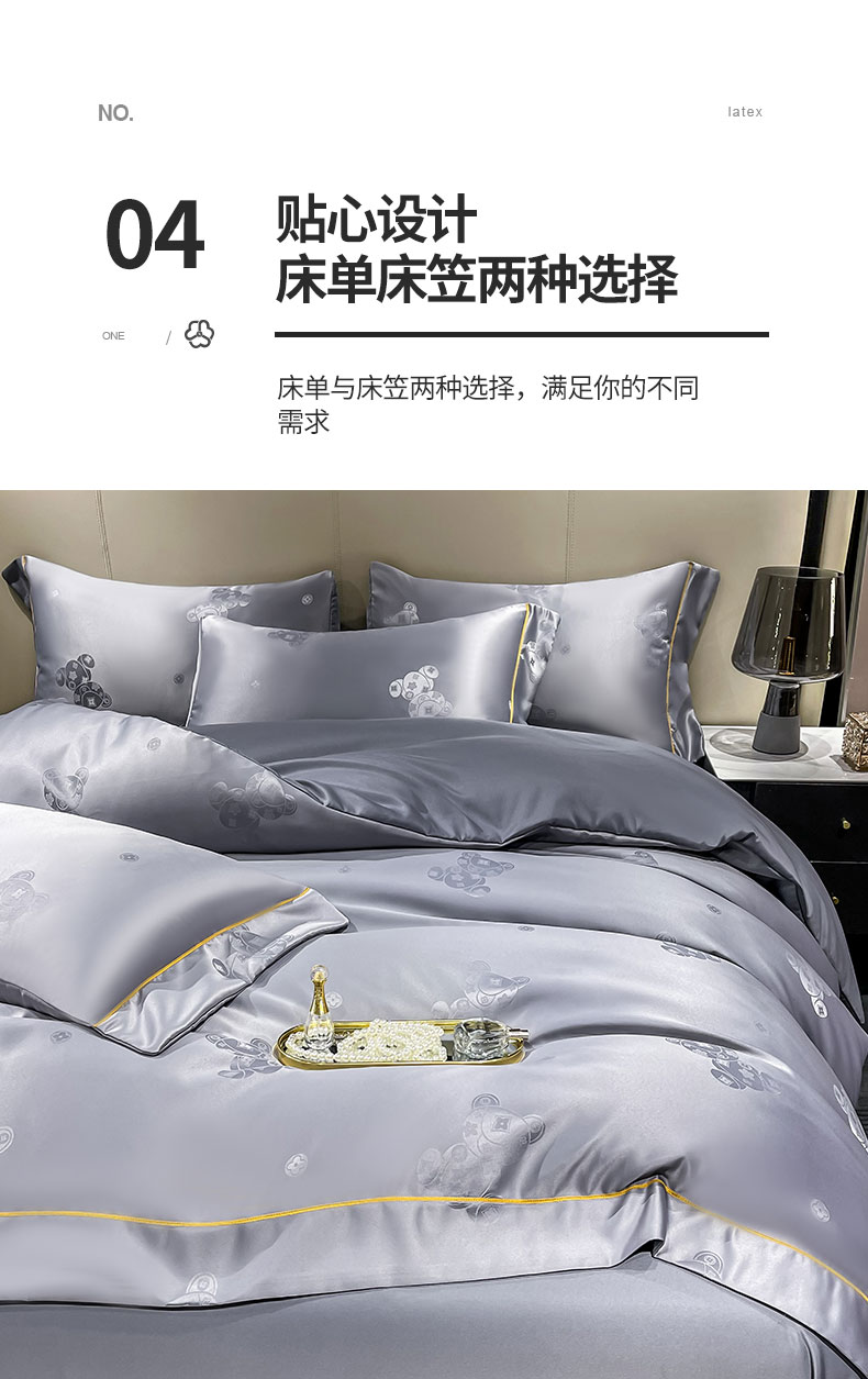 经年 2025新款潮流熊60S贡缎提花水洗真丝冰丝天丝四件套直播爆款 潮流熊-石灰