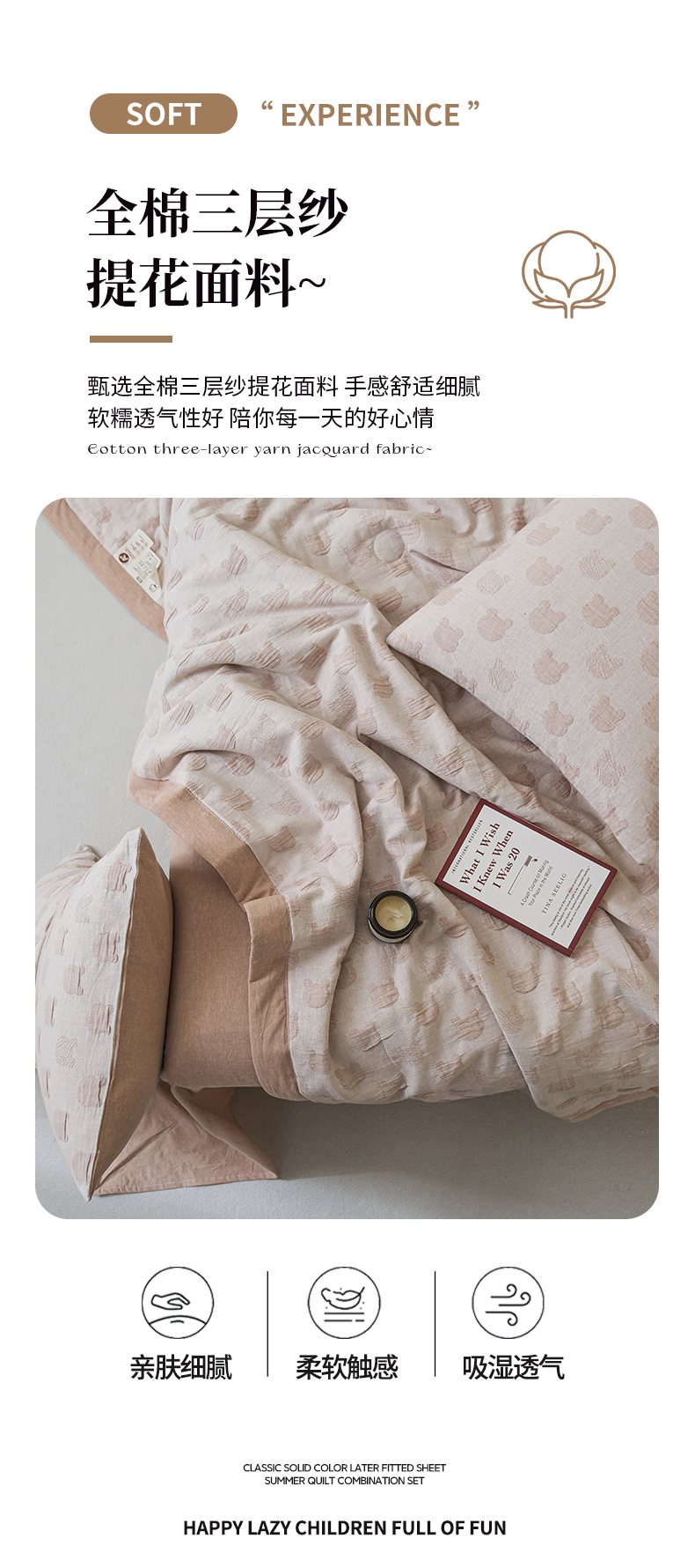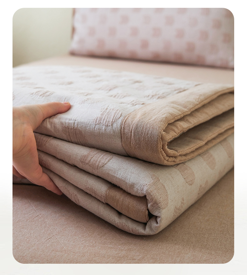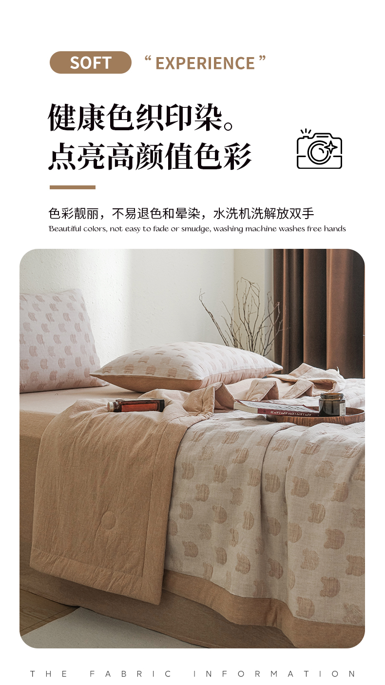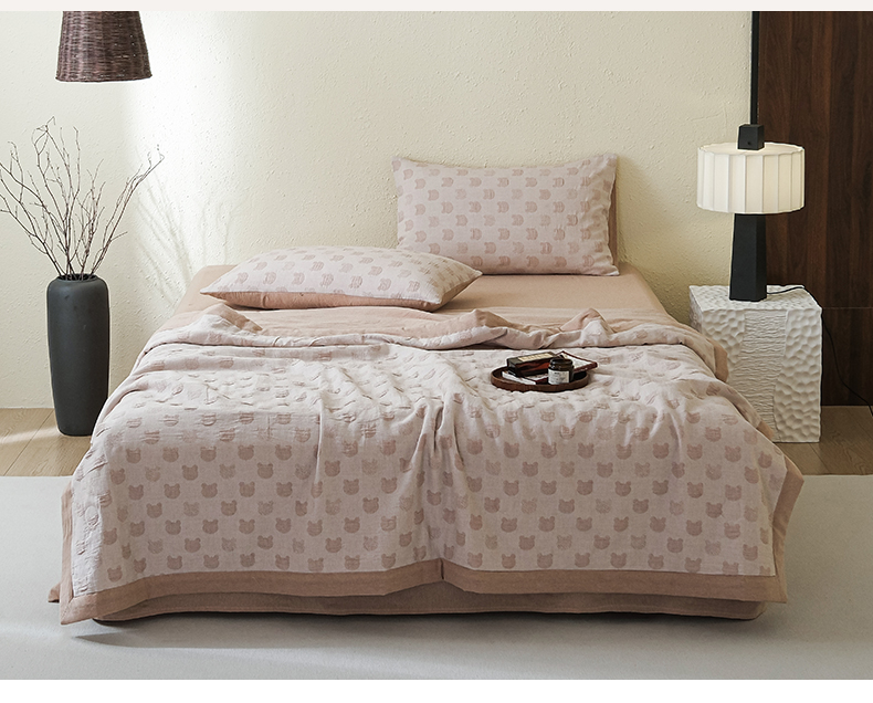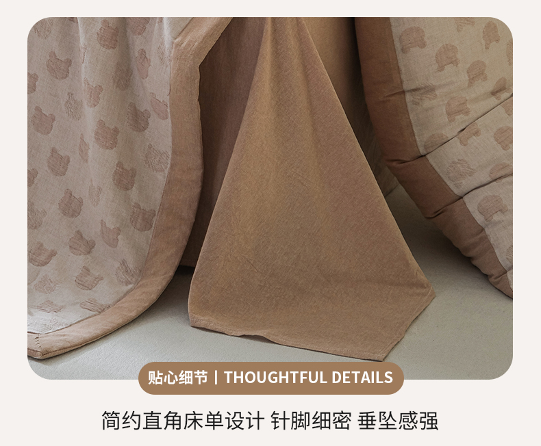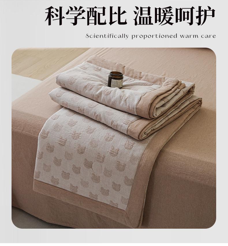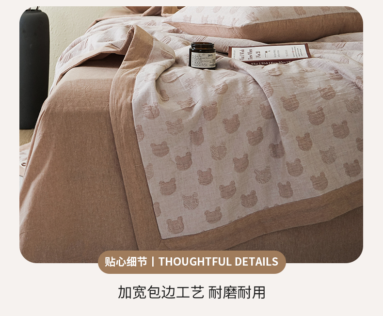 • 91家纺网 家纺一手货源 找家纺 优被业 2025新款A类全棉中古风全棉三层纱提花大豆夏被 小熊-咖