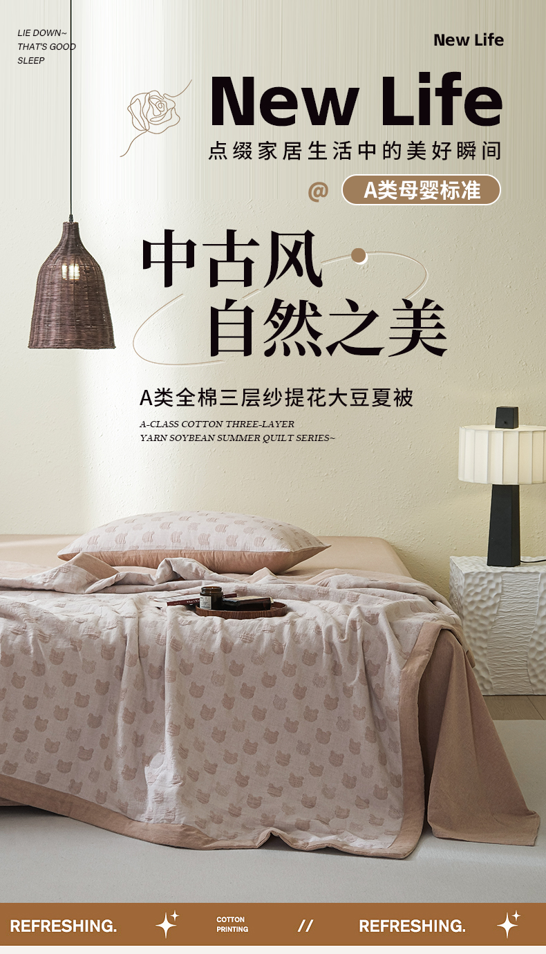 当前位置: 91家纺网 > 商品网购 > 被子 > 夏被 > 优被业 2025新款A类全棉中古风全棉三层纱提花大豆夏被 小熊-咖