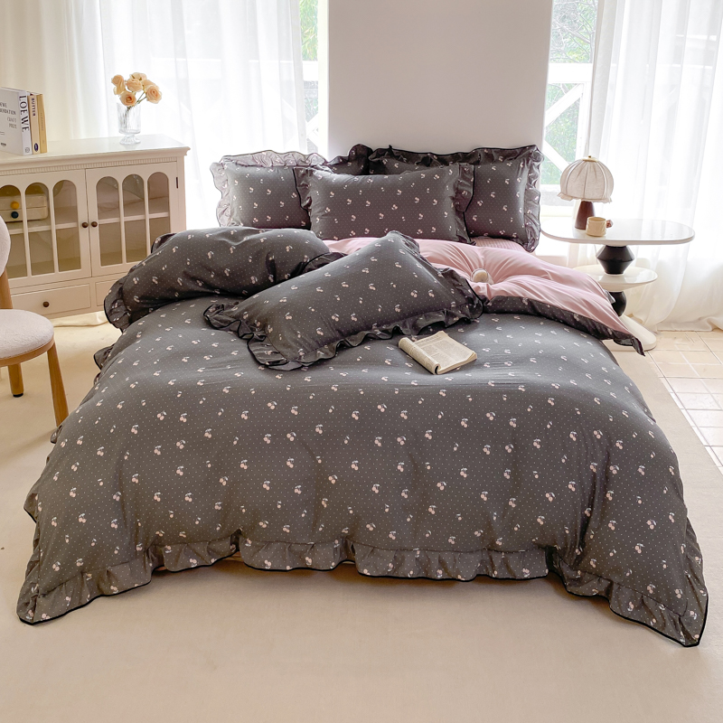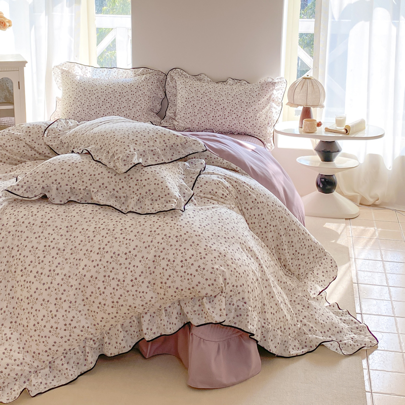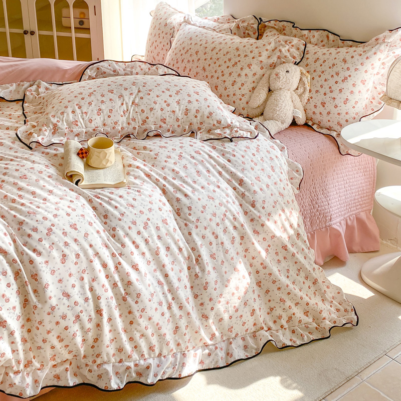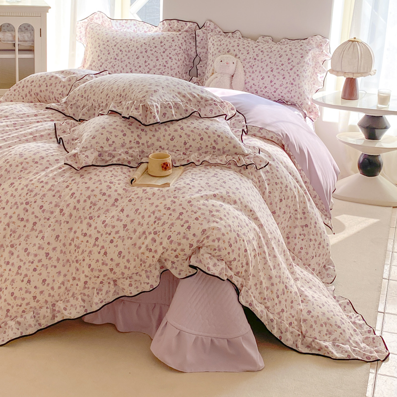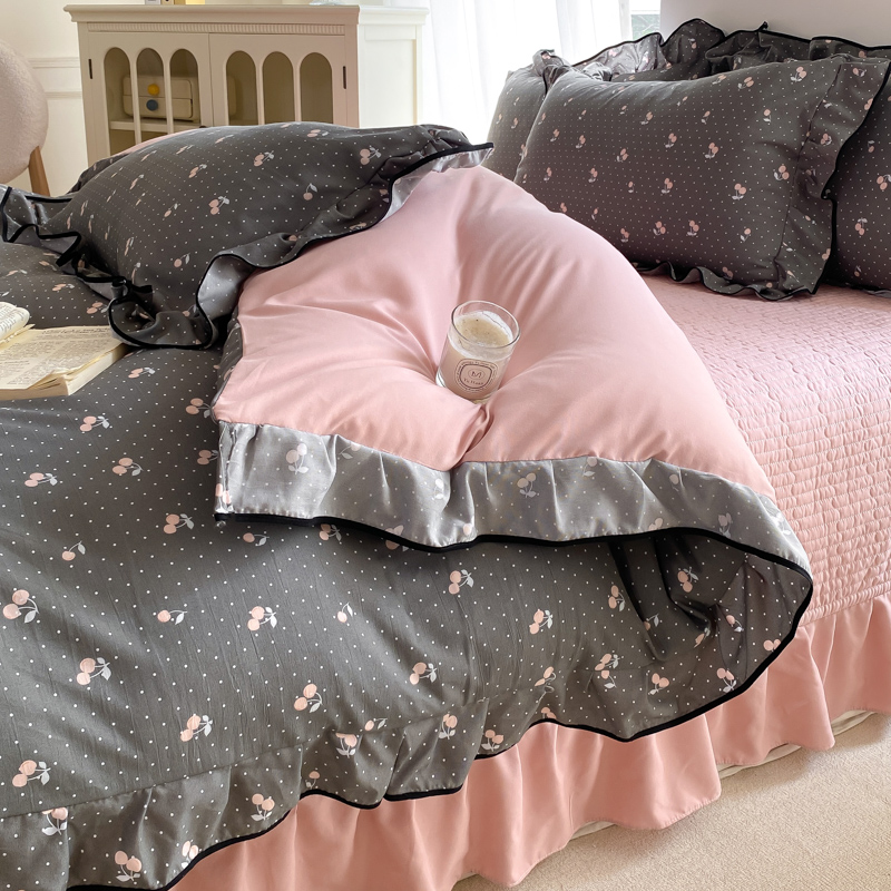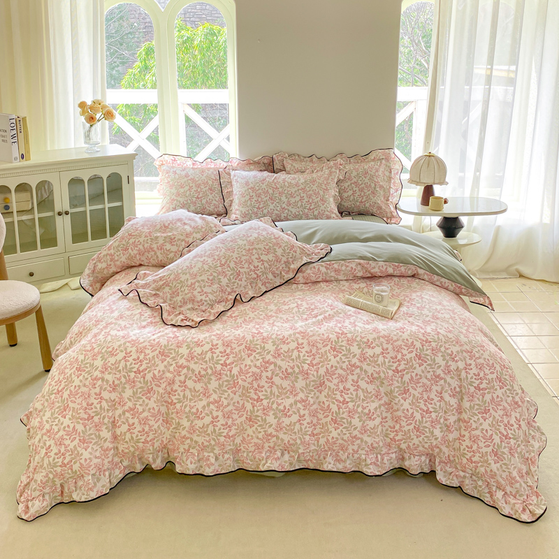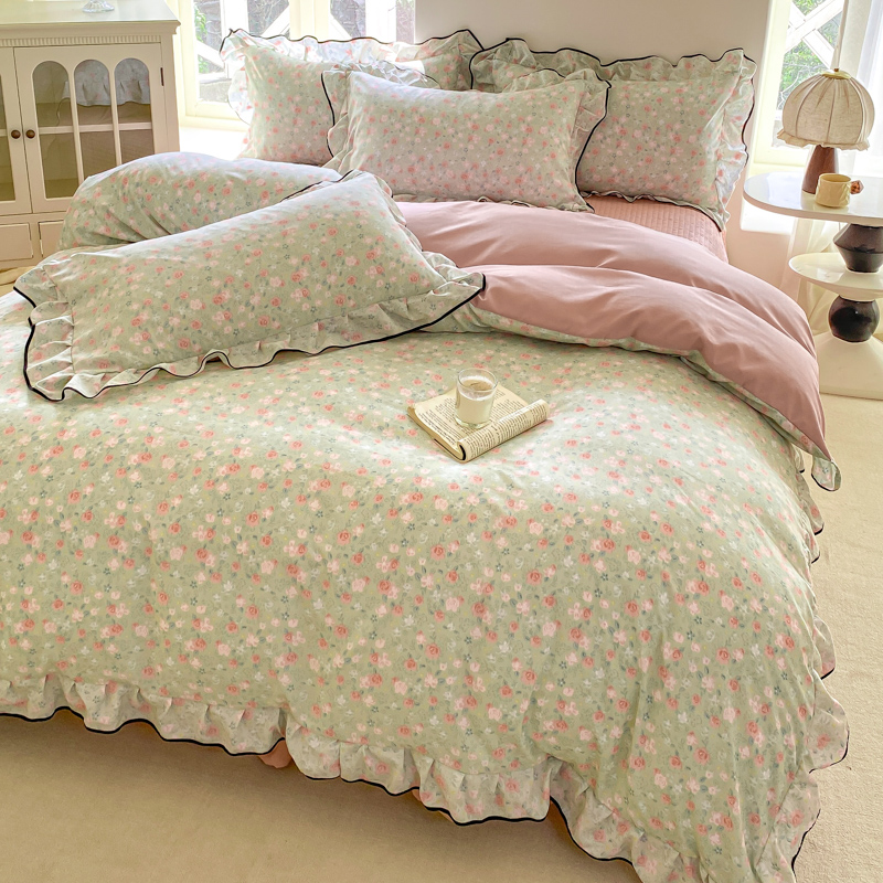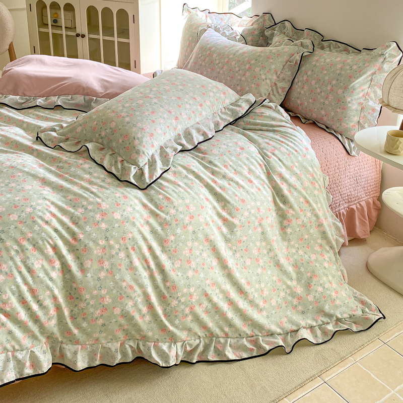 (总)一比一 2026新款云感皱皱双层纱四件套-全棉花边款【控价99元销售】,半夏绿,百福蓝,薄荷微凉,春风里,春晓,豆蔻,蝴蝶梦,可颂,兰黛,山野栀子,素颜,太妃糖,心动,遇见,芝士奶酪,紫爱心,紫苏,花园兔,蜡笔画,小黑兔,白茶-绿,初恋,莱茵河畔,桃花诺