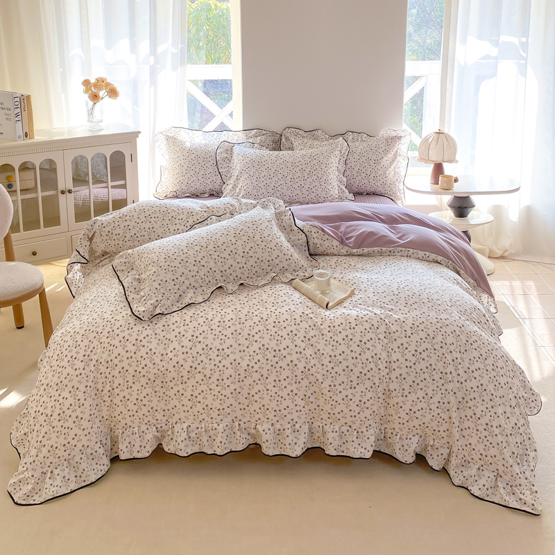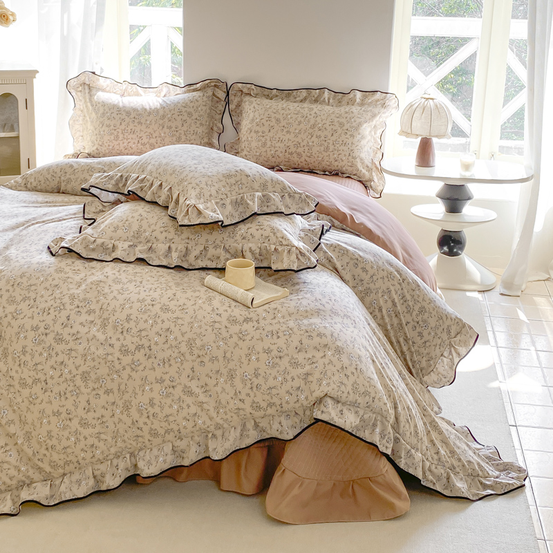 (总)一比一家纺 2025新款古法水洗棉全棉花边蝴蝶结四件套,组合图仅供展示,艾薇,花开满园,静初,可可庄园,绿野仙踪,觅秋,暮归十里,雅集,雅漫花语,悠然雅居,鸢尾兰,紫郁