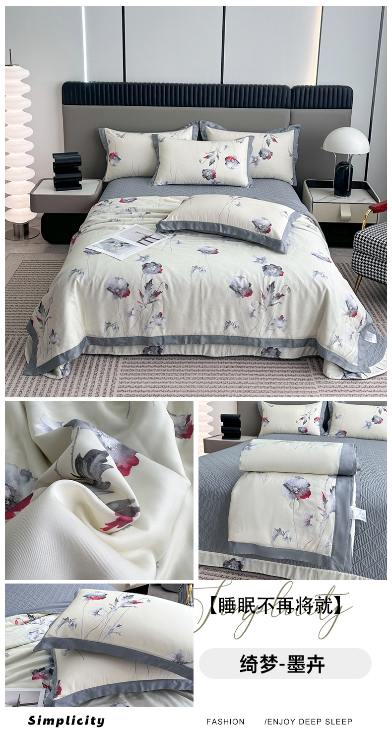 商品名称:美伦美焕 2025新款天丝夏被床盖四件套 绮梦-墨卉