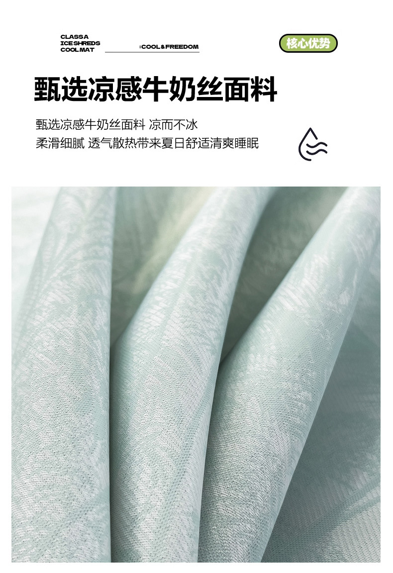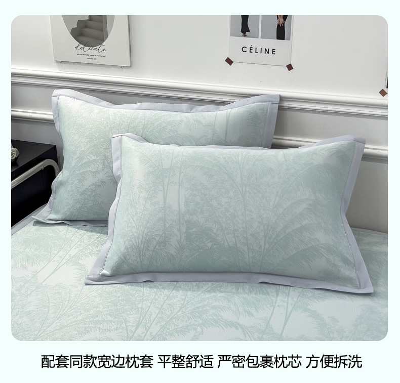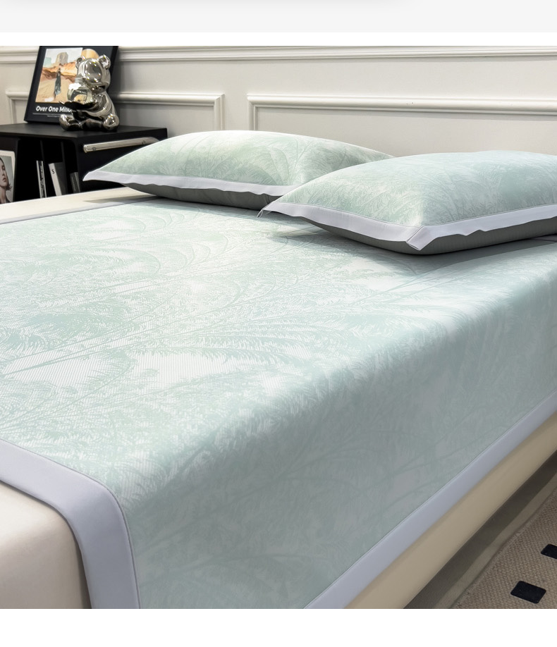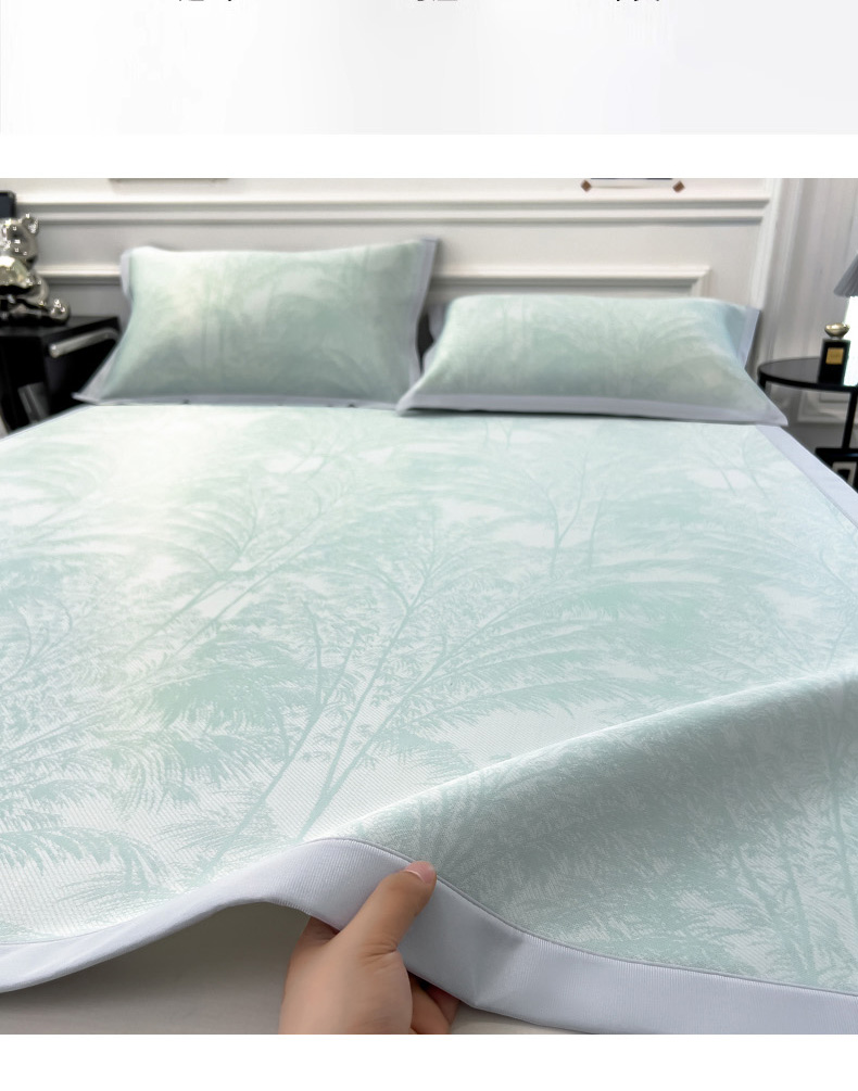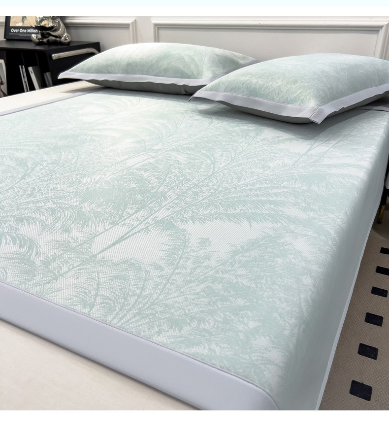 商品名称:2025新款牛奶丝提花凉感凉席系列床席款 森林奇境绿床席款