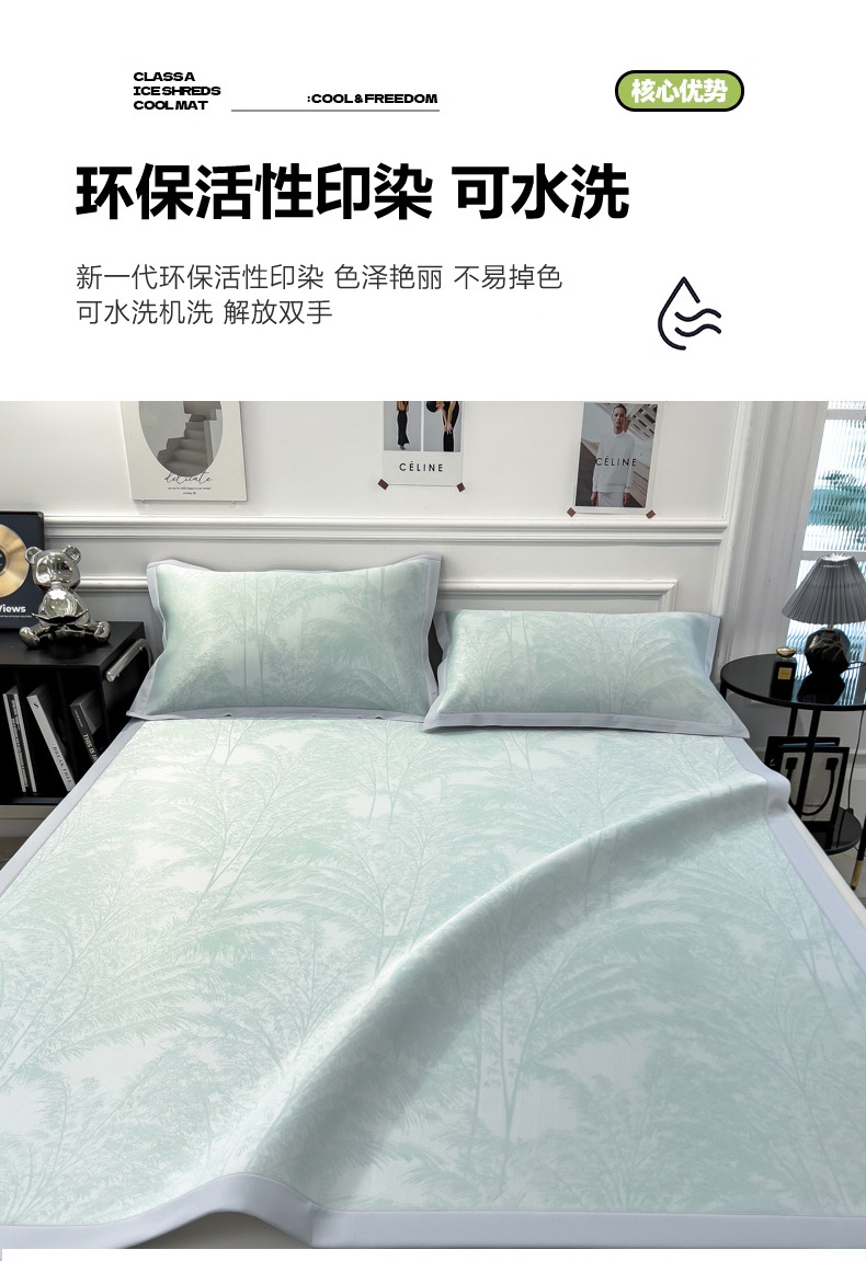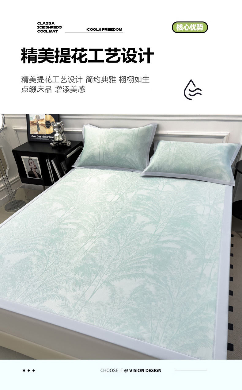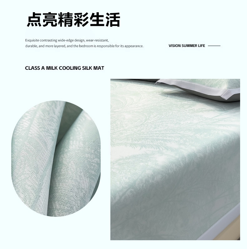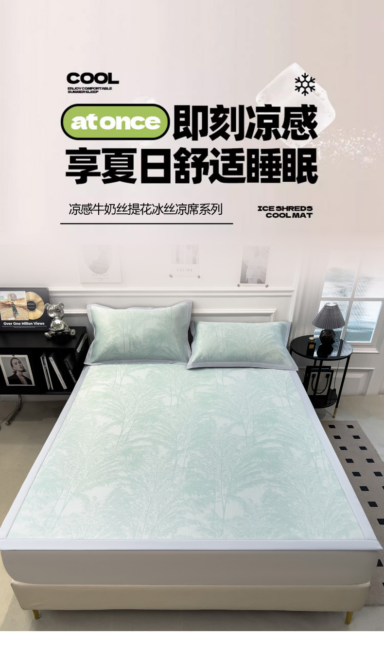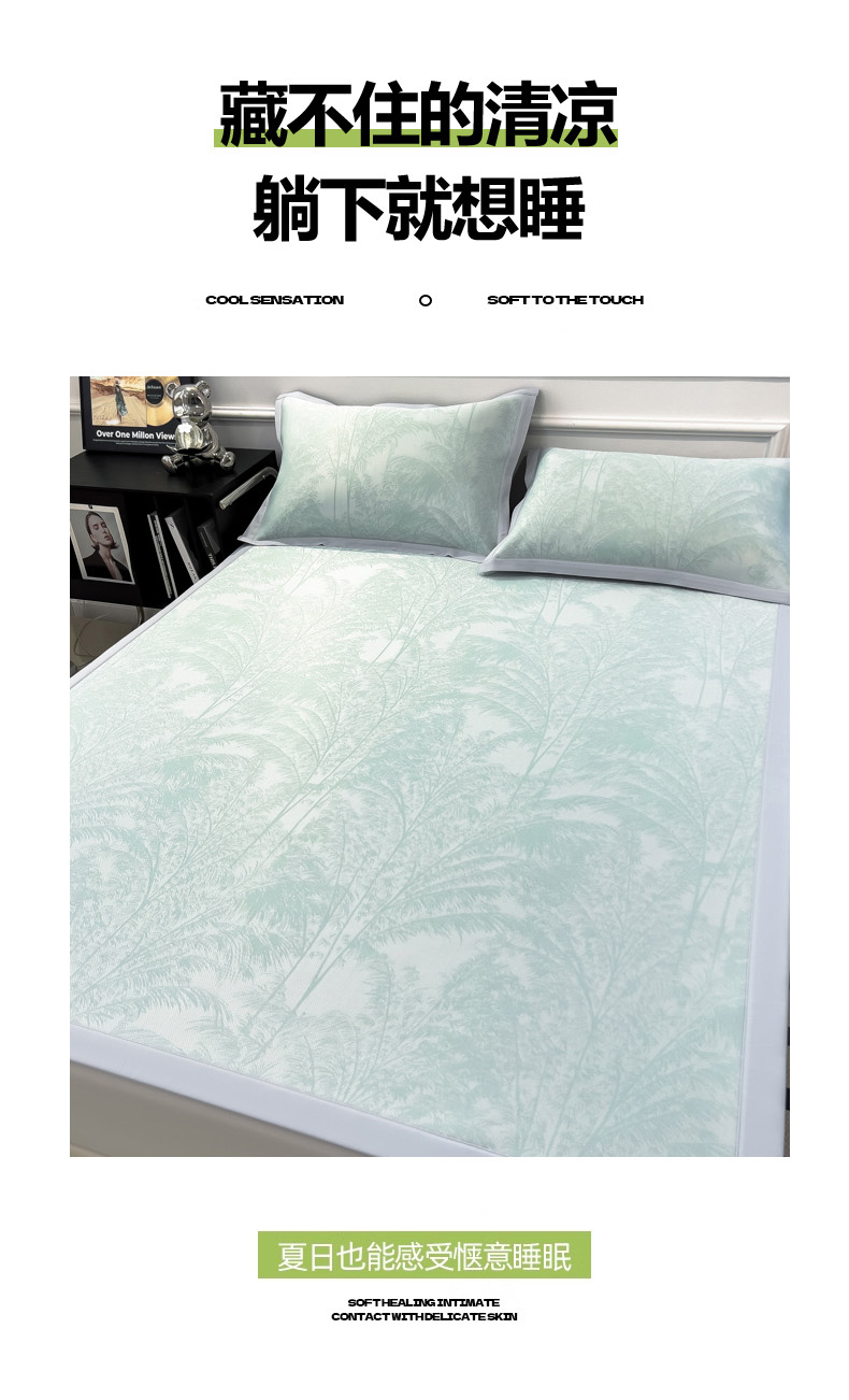 商品名称:2025新款牛奶丝提花凉感凉席系列床席款 森林奇境绿床席款