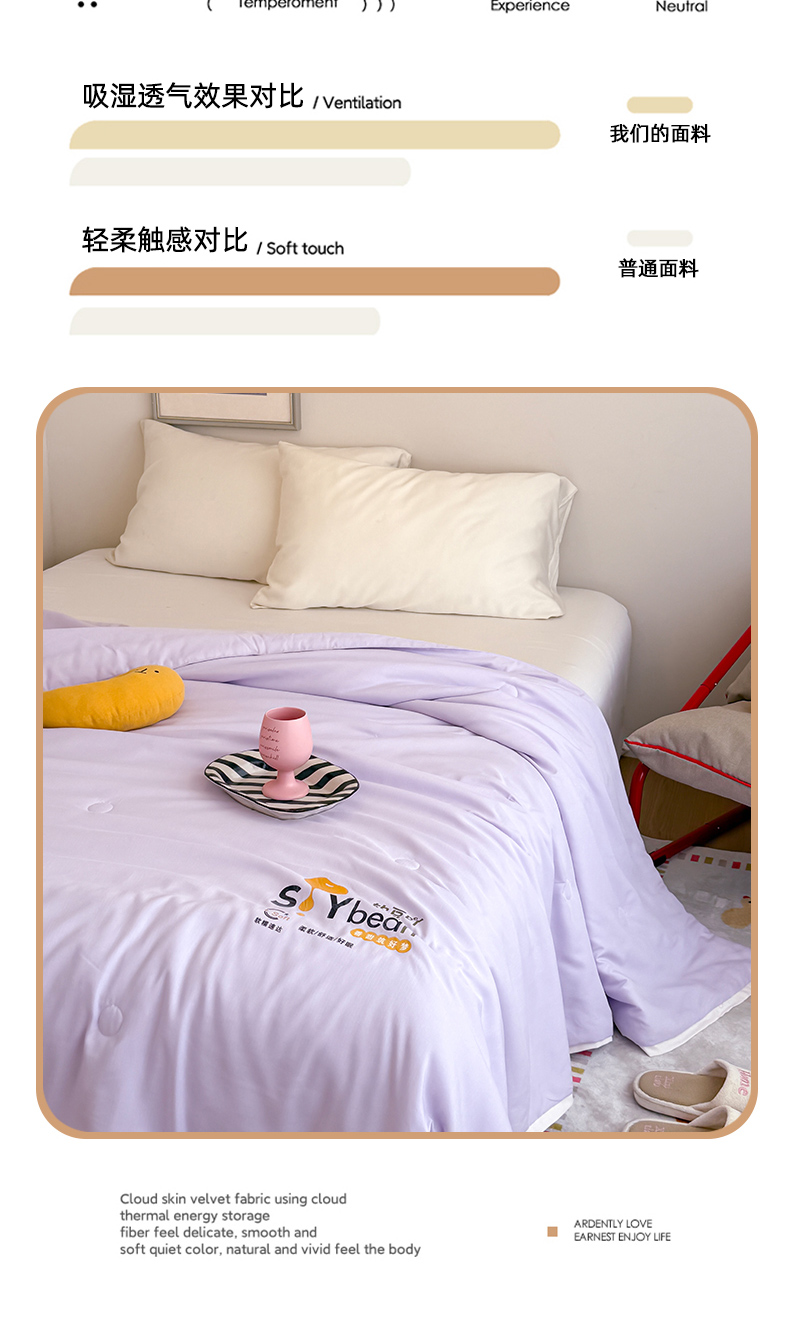 商品名称:亿莱鑫 2025新款超细羽丝棉糯小米夏凉被 空调被 被子夏被夏凉被 香芋紫