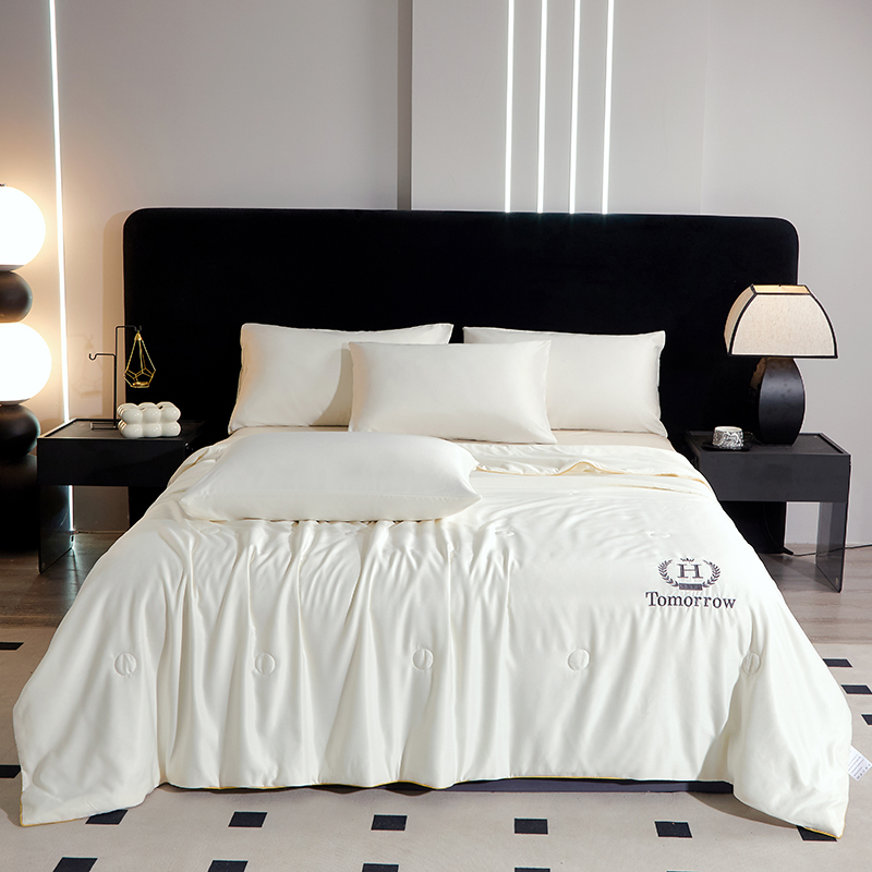商品名称:禧缘家纺 2025新款水洗真丝绣花夏被 夏日物语-奶白