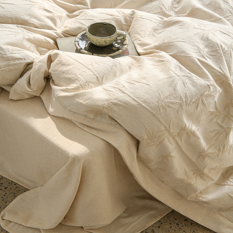 (总)简家居 2025新款20%亚麻80%棉棉麻提花四件套-法颂,法颂