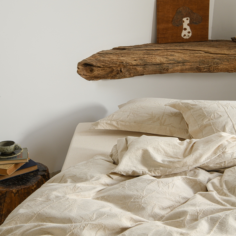(总)简家居 2025新款亲肤舒适棉麻床盖三件套,棉麻提花