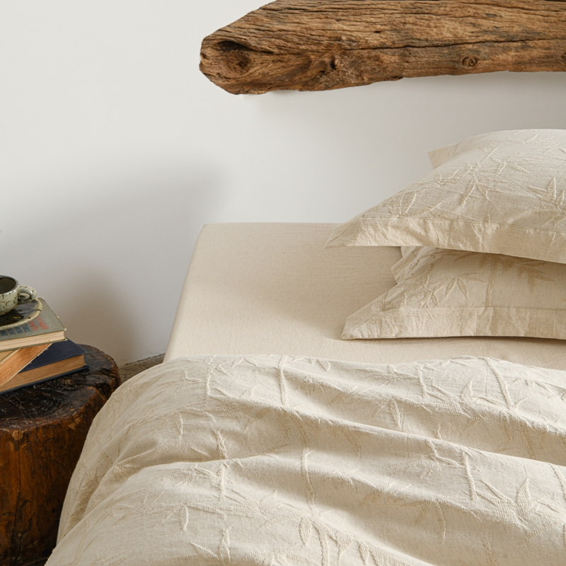 (总)简家居 2025新款20%亚麻80%棉棉麻提花四件套-常青藤