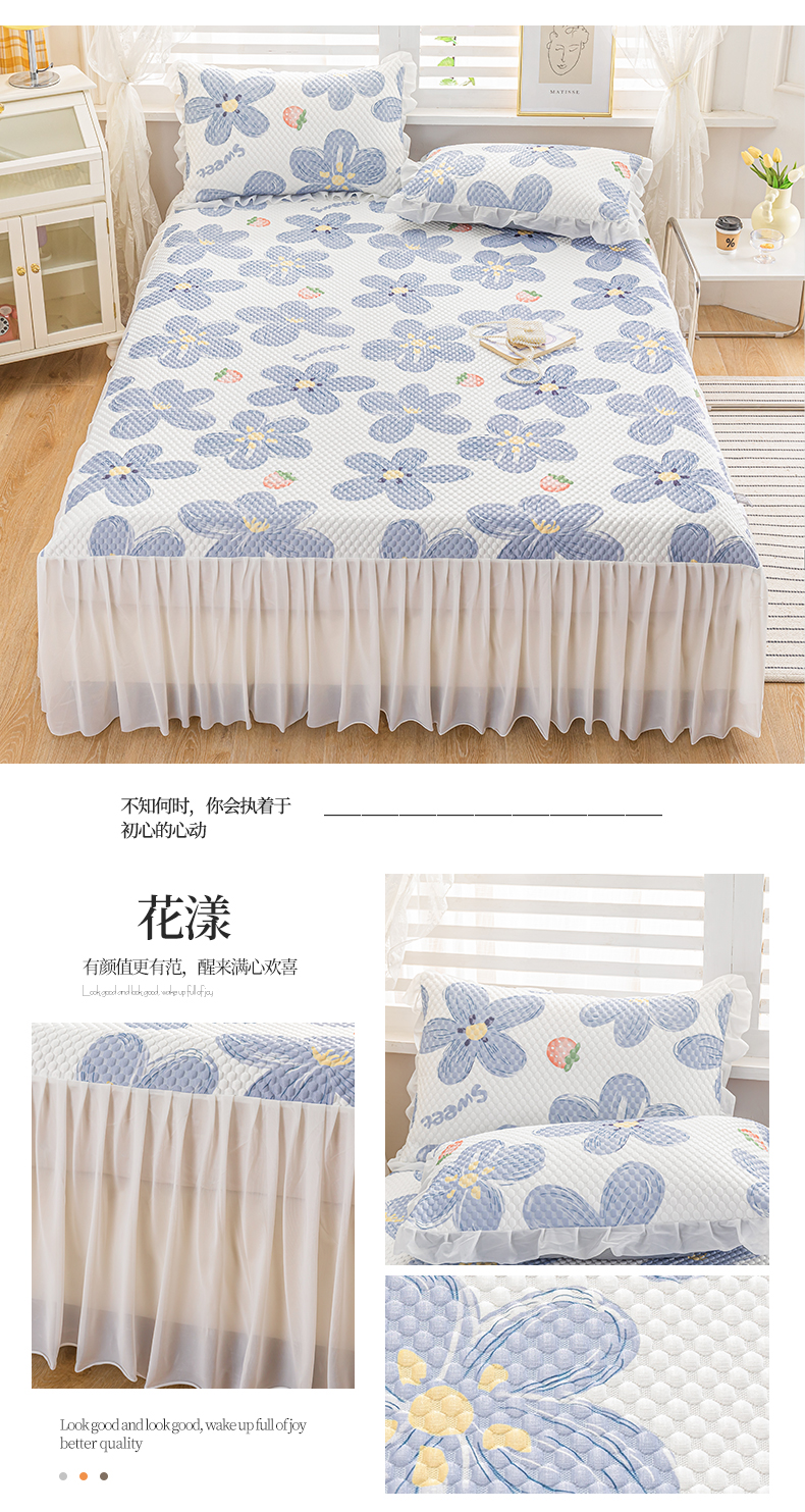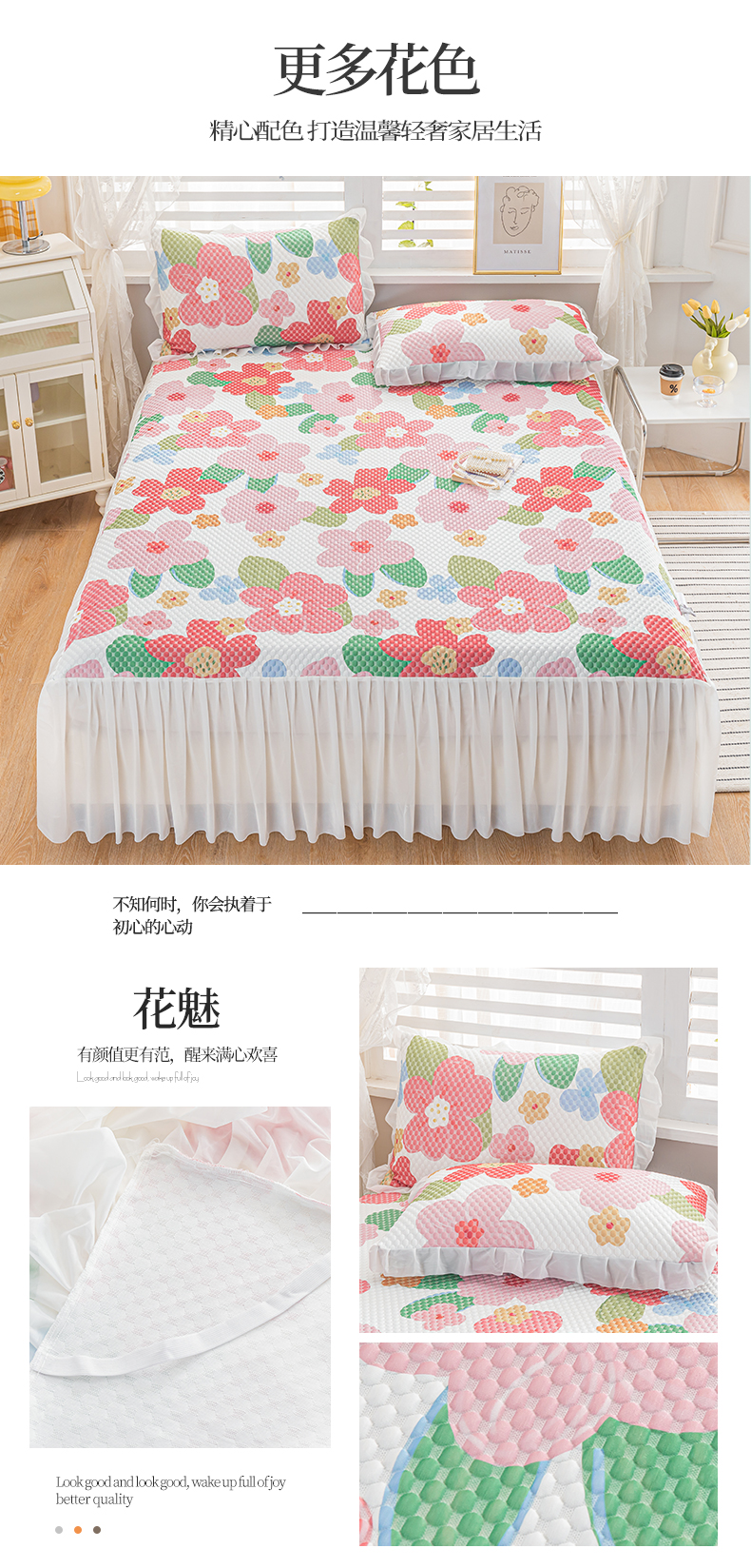 2025新款A类冰豆豆床裙款印花凉席 草莓熊