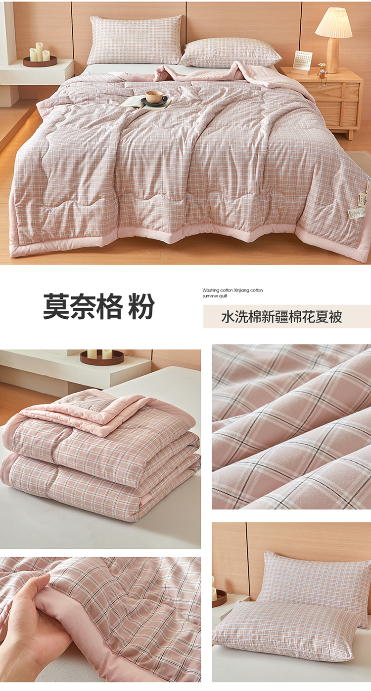 商品名称:易博家纺 2025新款格子纯色水洗棉无印风百分百新疆棉花夏被夏凉被被子被芯 莫奈格 粉