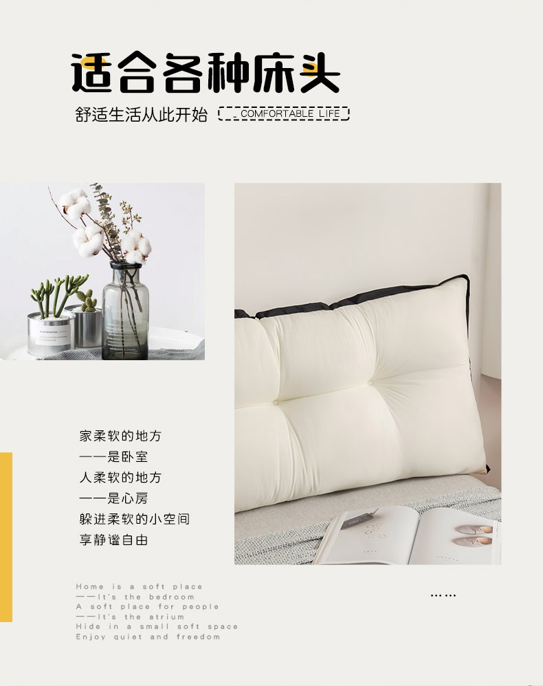 色鬼布艺 2025新款床头靠背垫不塌陷卧室防撞床上靠垫宿舍护腰靠枕软包 云悠-奶白