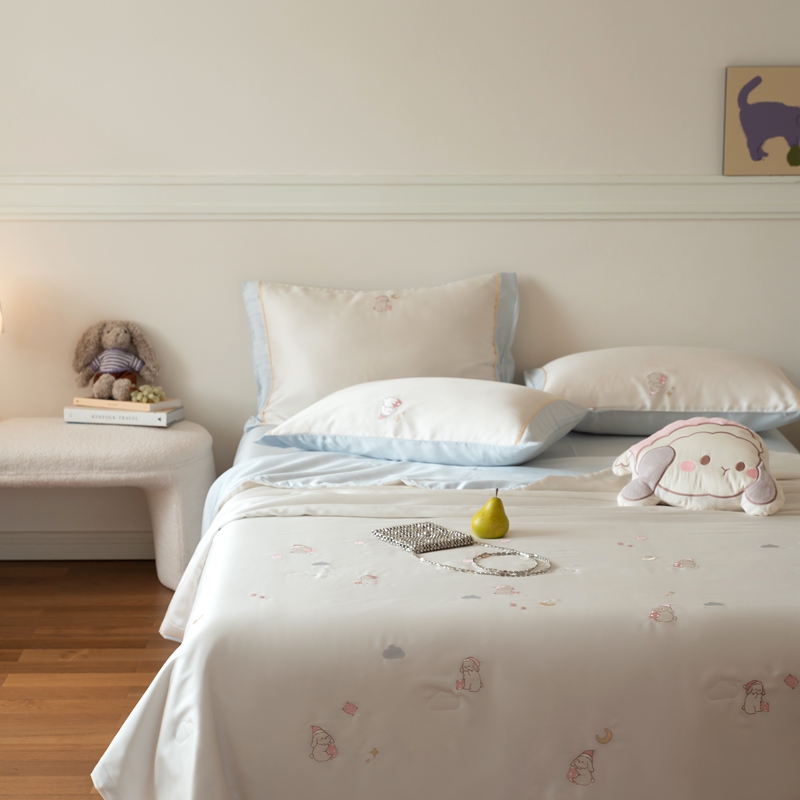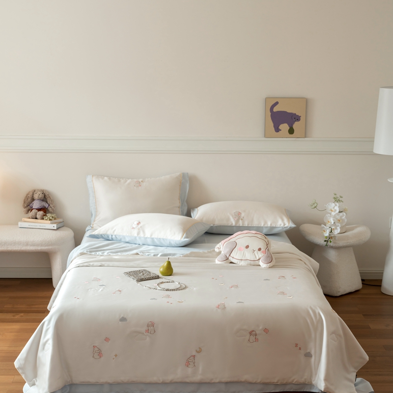 当前位置: 91家纺网 > 商品网购 > 被子 > 莱赛尔夏被 > 鹿班家居 2025新款夏季60S莱赛尔刺绣夏被系列——晚安兔【标准会员-20元】 晚安兔-白&蓝