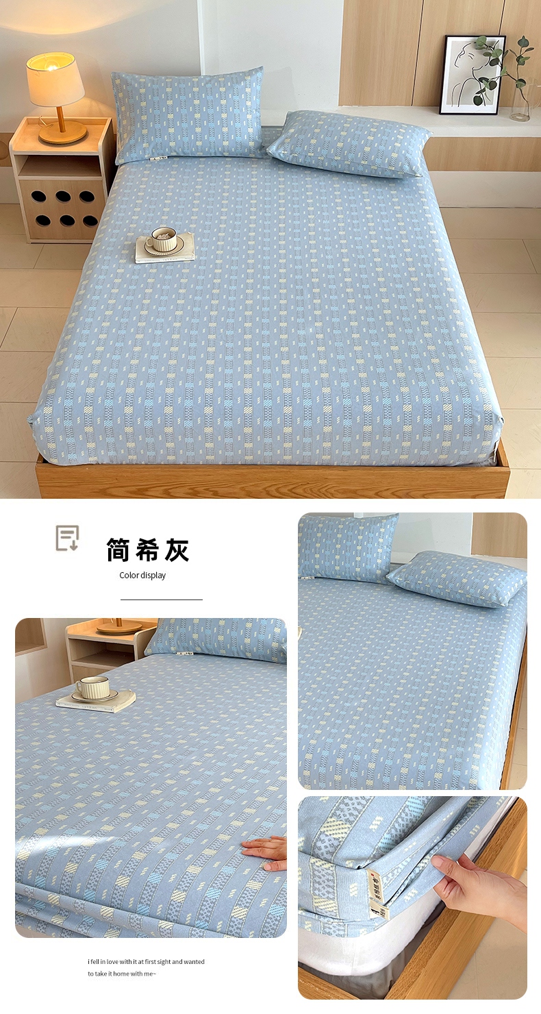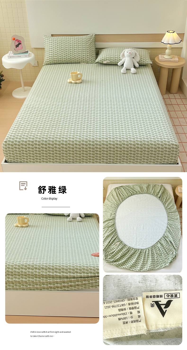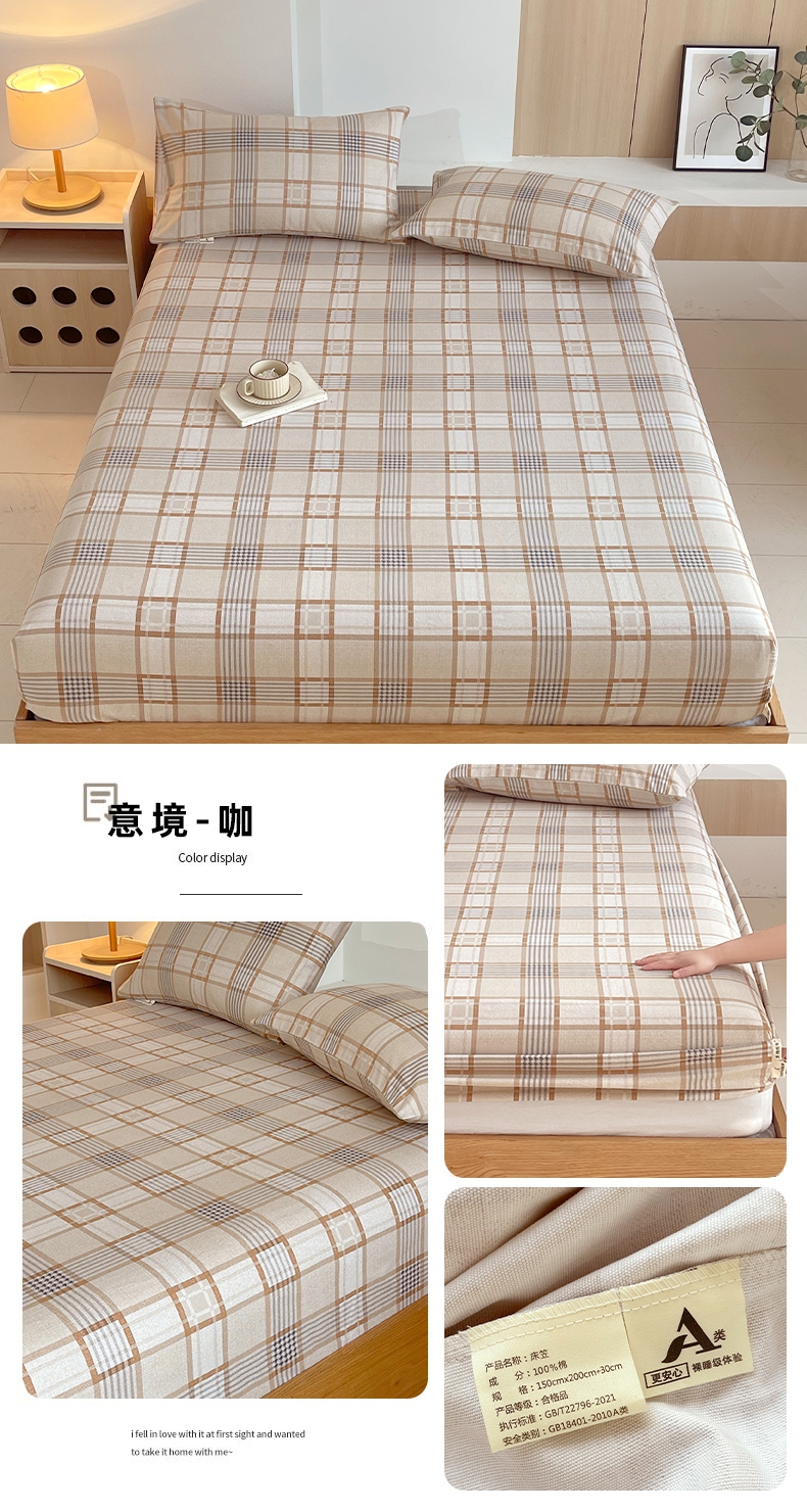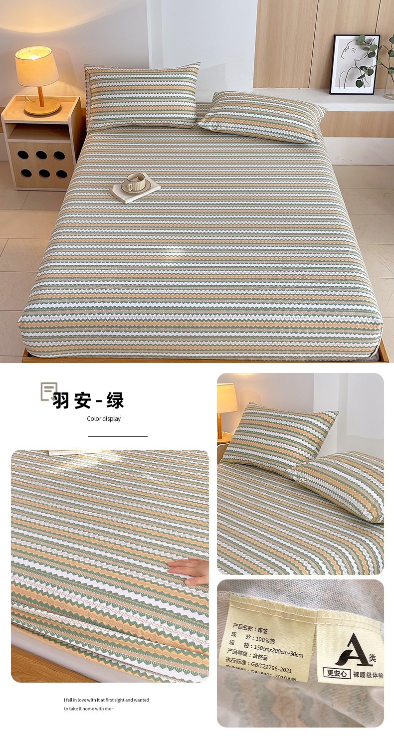 (总)春皖家纺 2025新款A类全棉简约老粗纱布四件套风格一-普通款单床笠