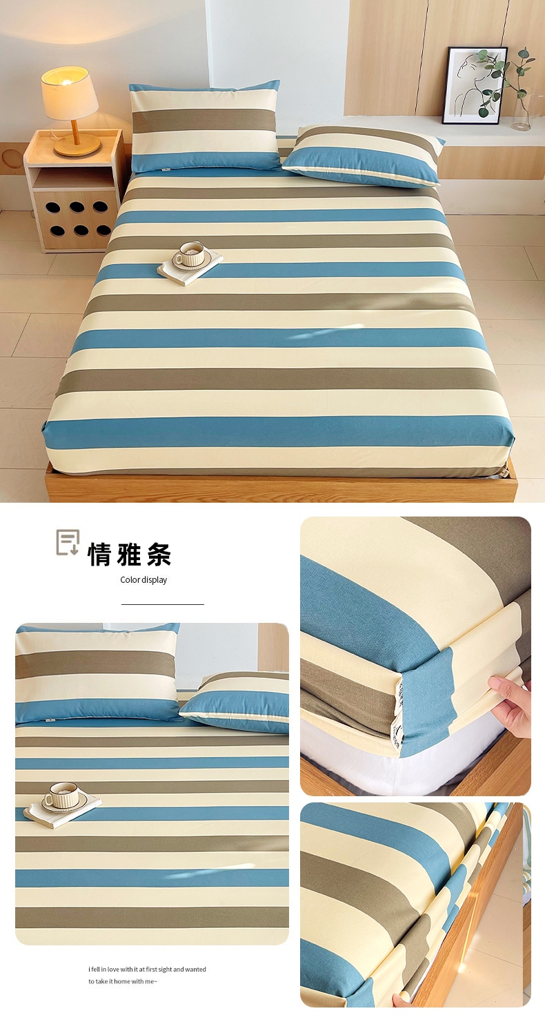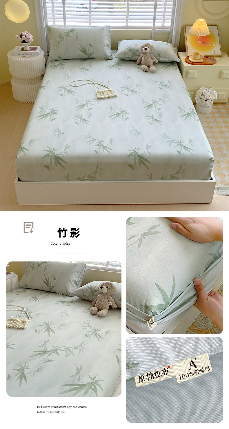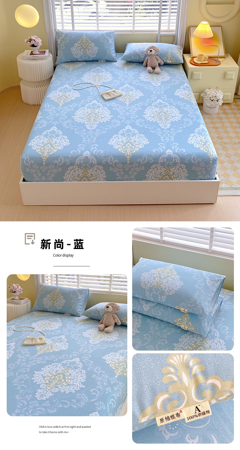 (总)春皖家纺 2025新款A类全棉简约老粗纱布四件套风格一-普通款单床笠