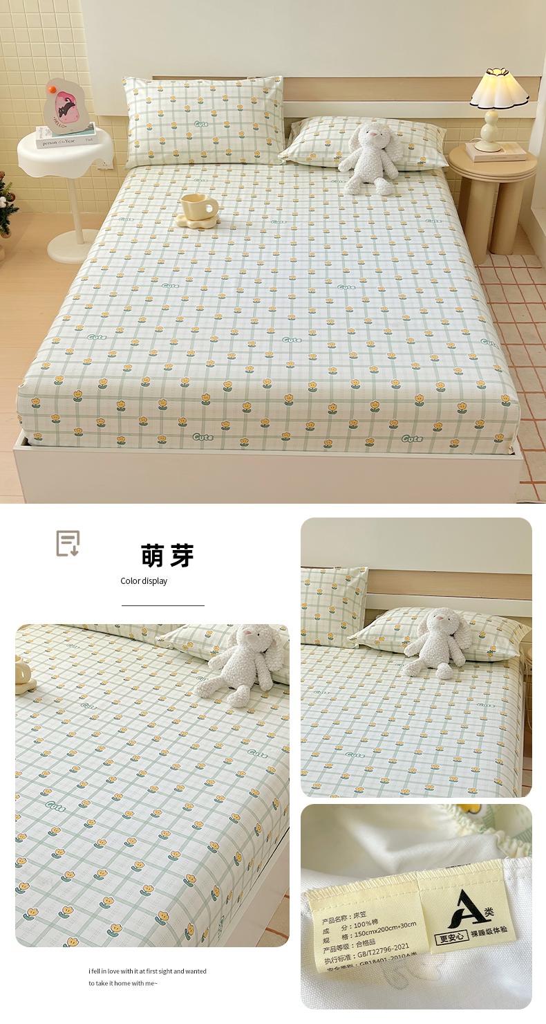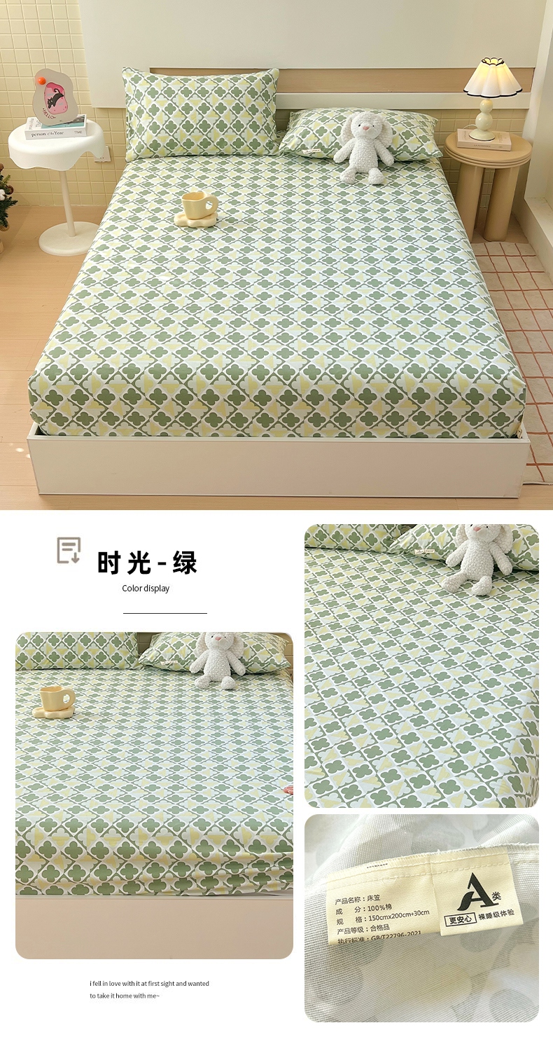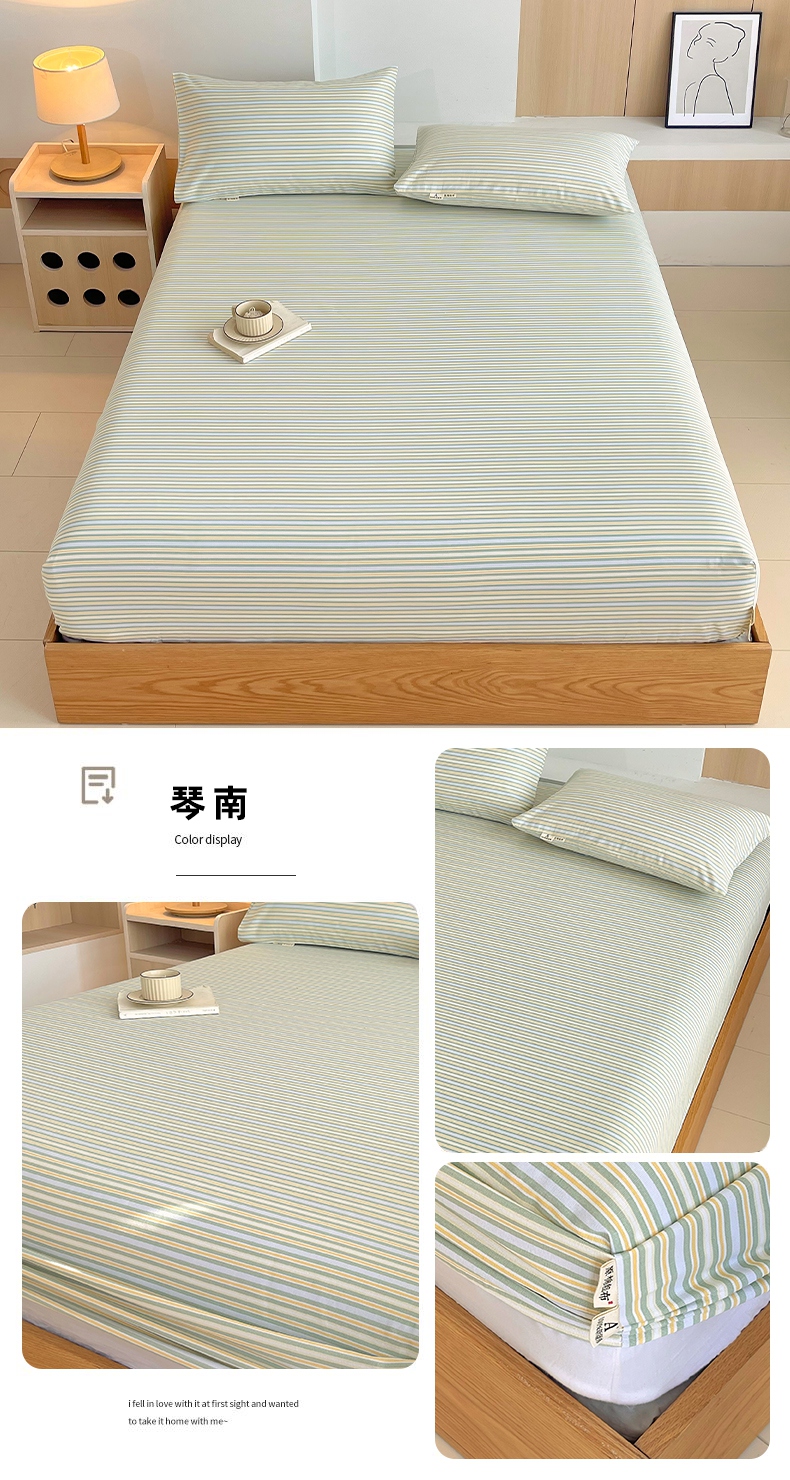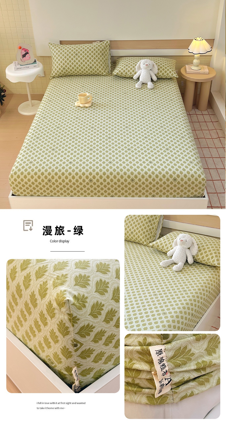 (总)春皖家纺 2025新款A类全棉简约老粗纱布四件套风格一-普通款单床笠