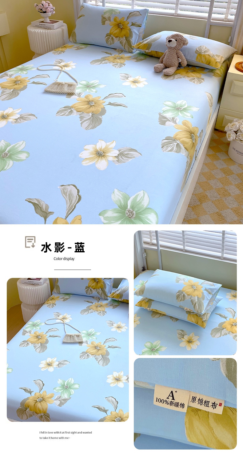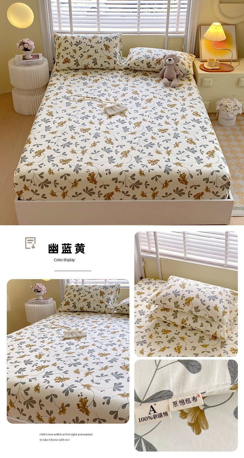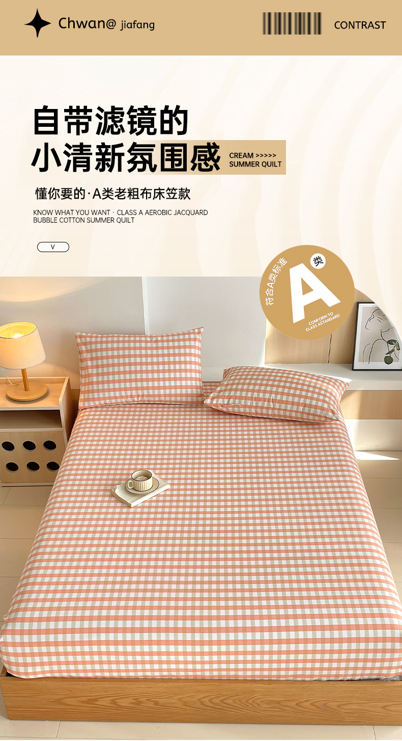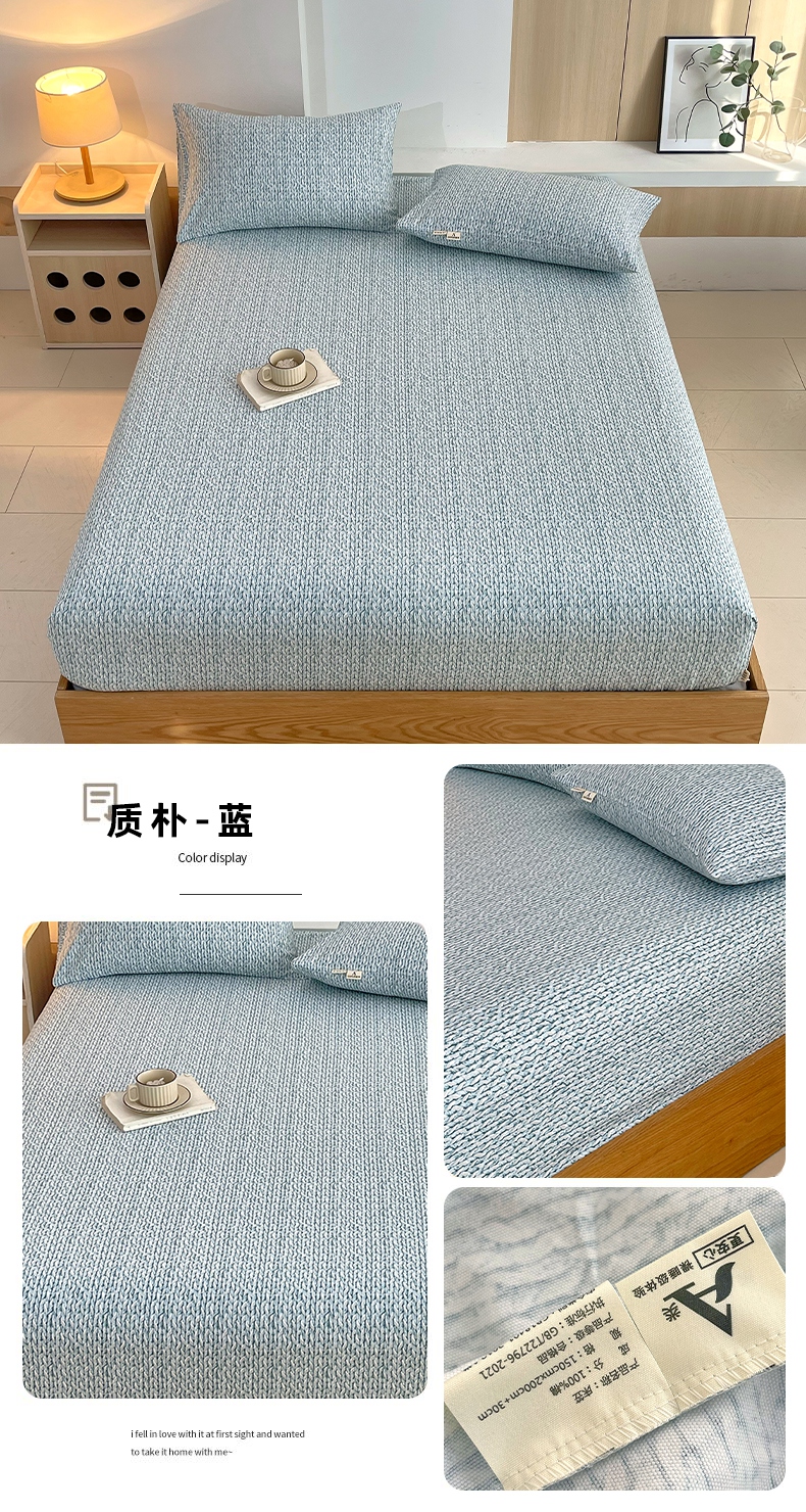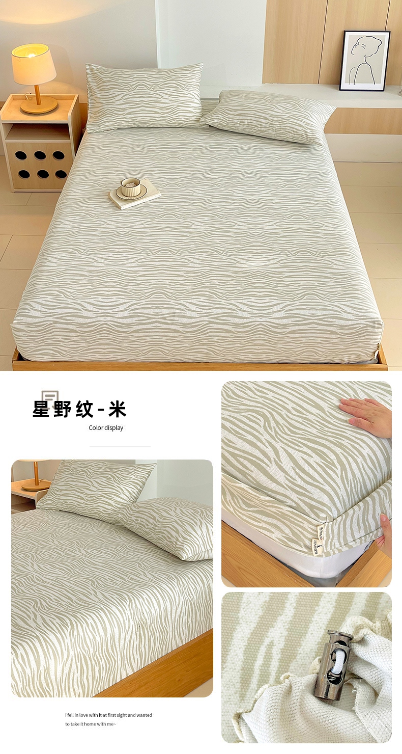 商品名称:(总)春皖家纺 2025新款A类全棉简约老粗纱布四件套风格一-普通款单床笠