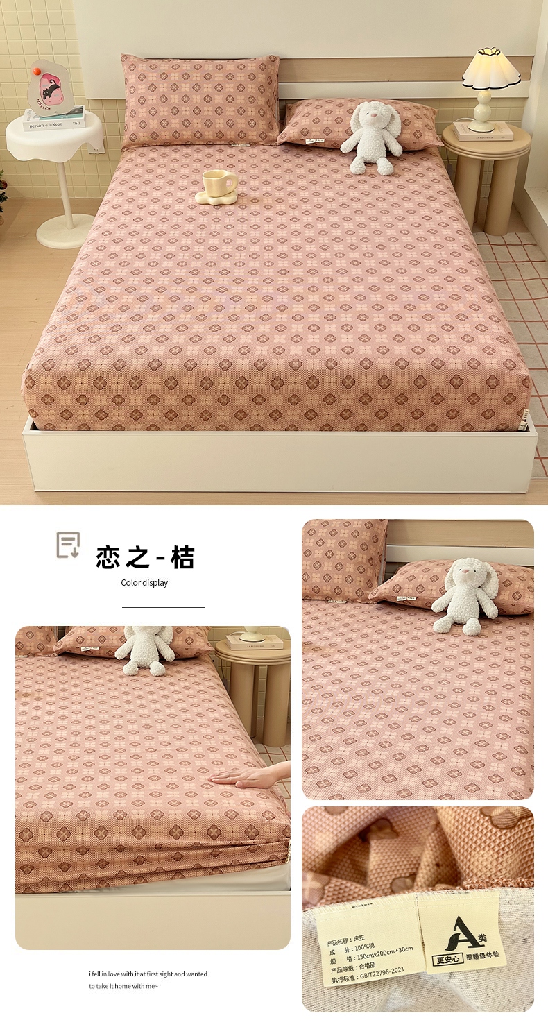 (总)春皖家纺 2026新款A类全棉有氧双层纱印花四件套单品系列-单床笠,桂语兰庭,暮春,雾染玫瑰,晴丝一缕,青茵,花町,旧梦朝花,花织,雾色里德,雾棕
