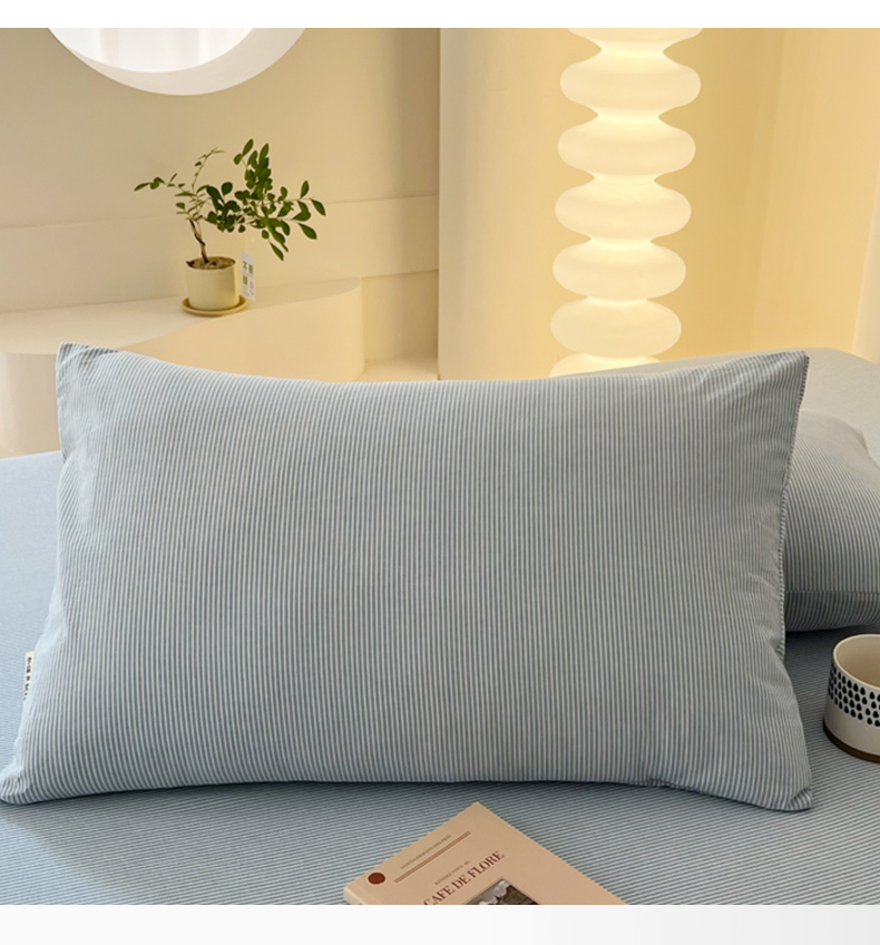恋之语家纺 2025新款全棉纯棉色织枕套单品单枕套枕套单件 条纹蓝