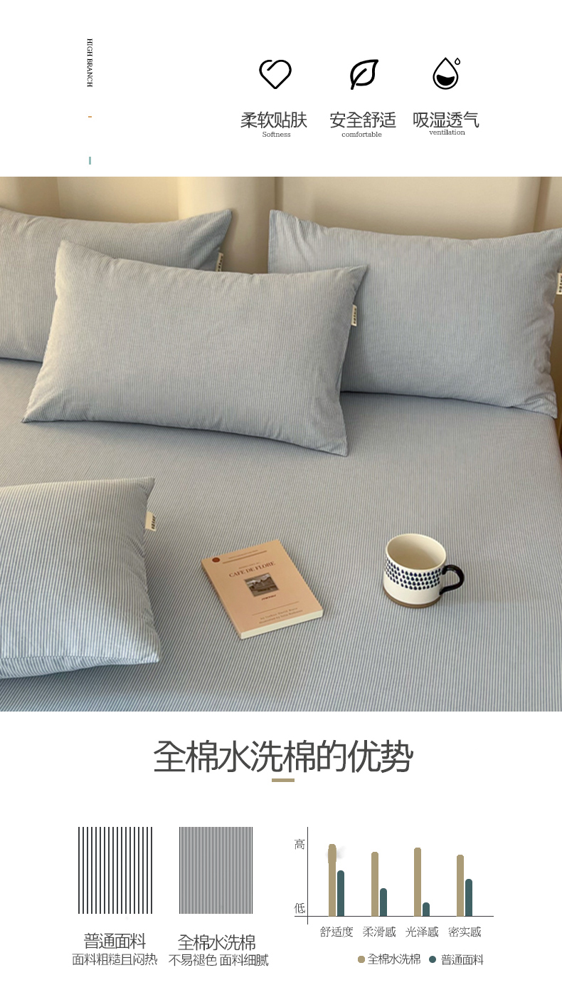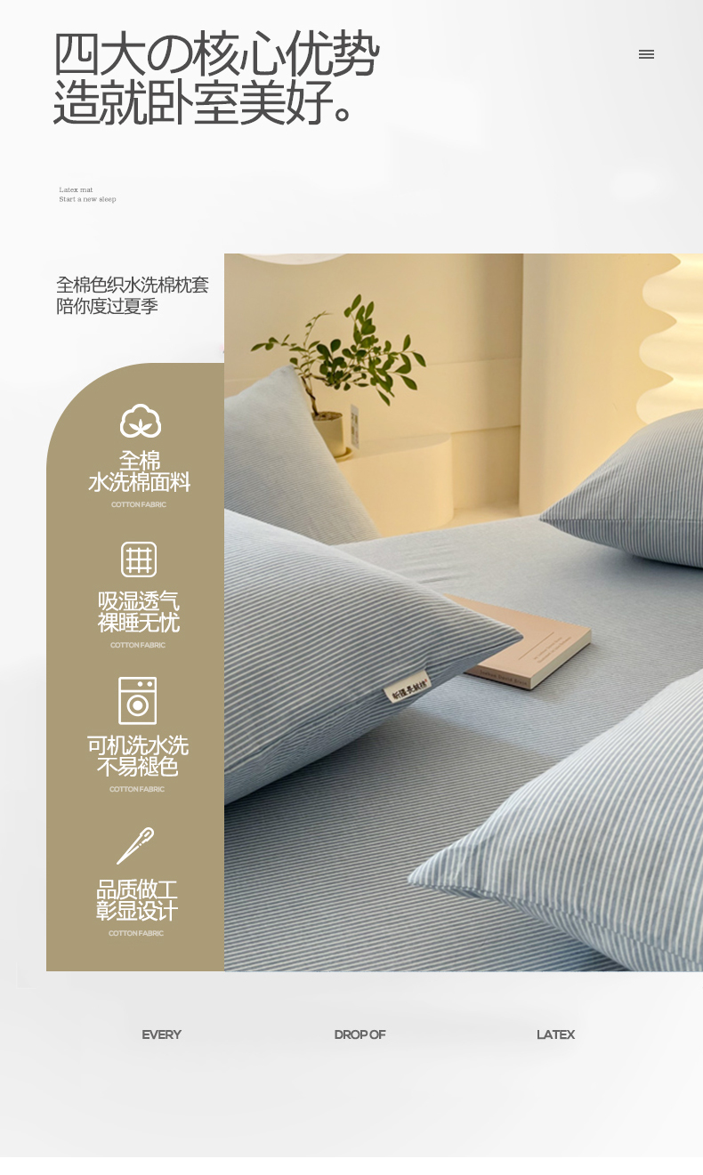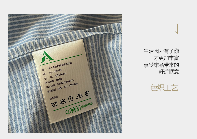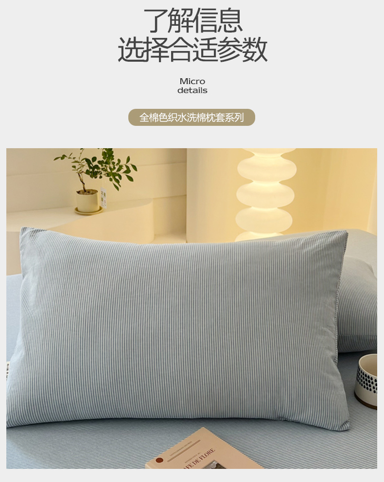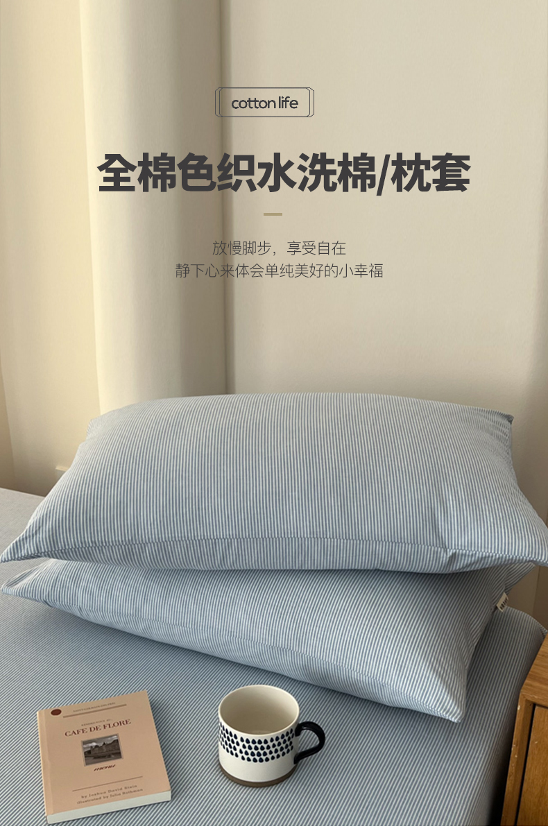 商品名称:恋之语家纺 2025新款全棉纯棉色织枕套单品单枕套枕套单件 条纹蓝