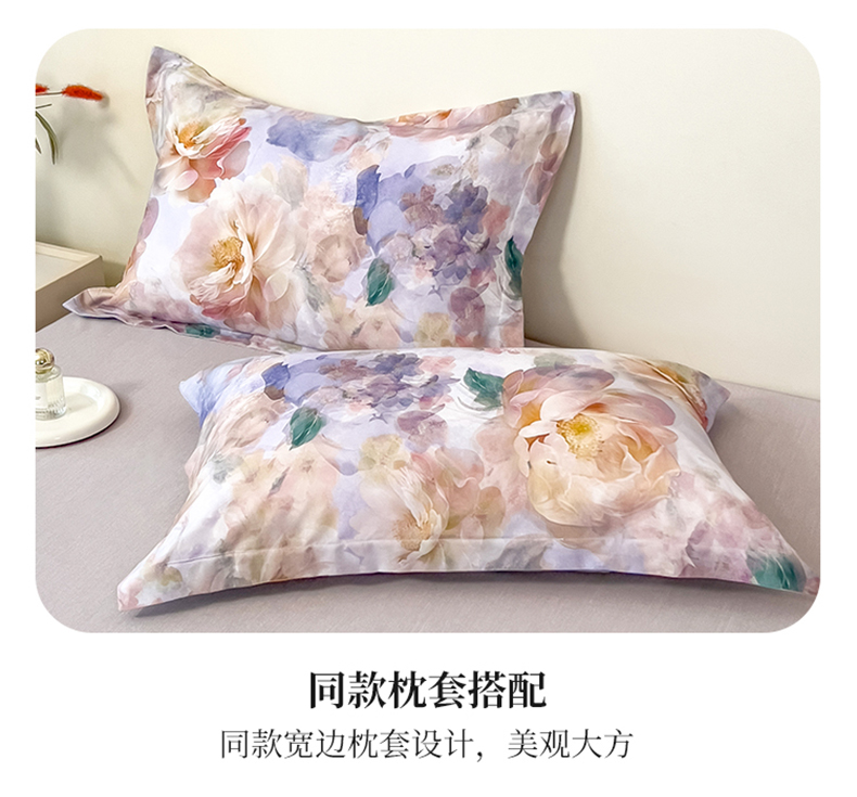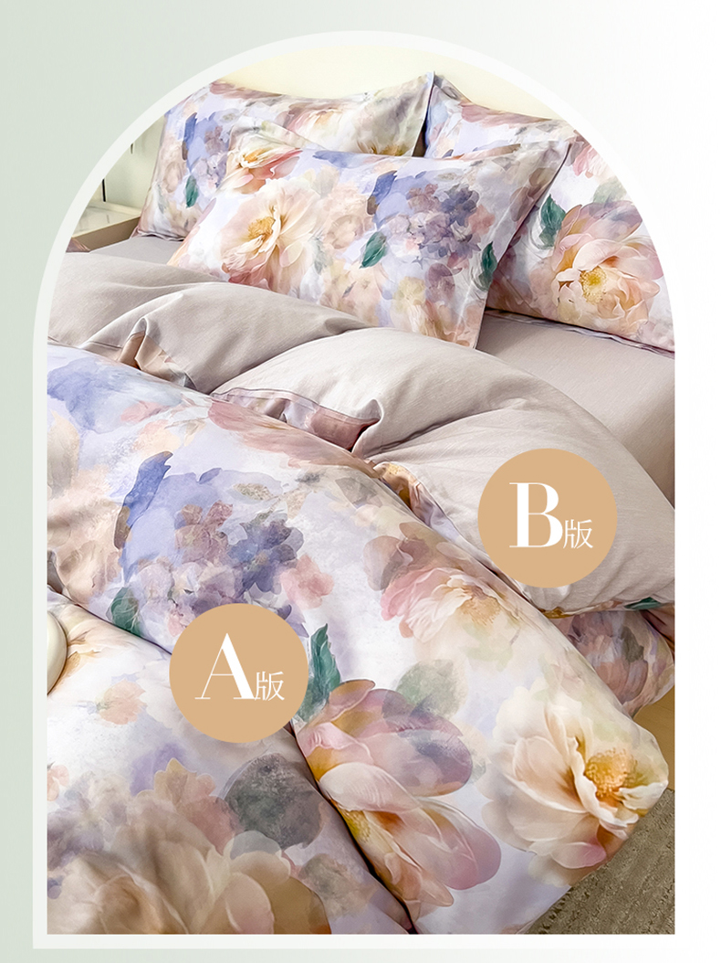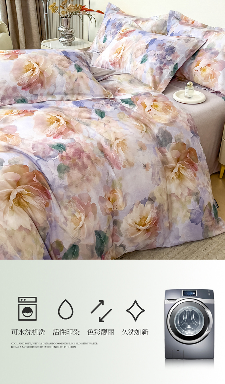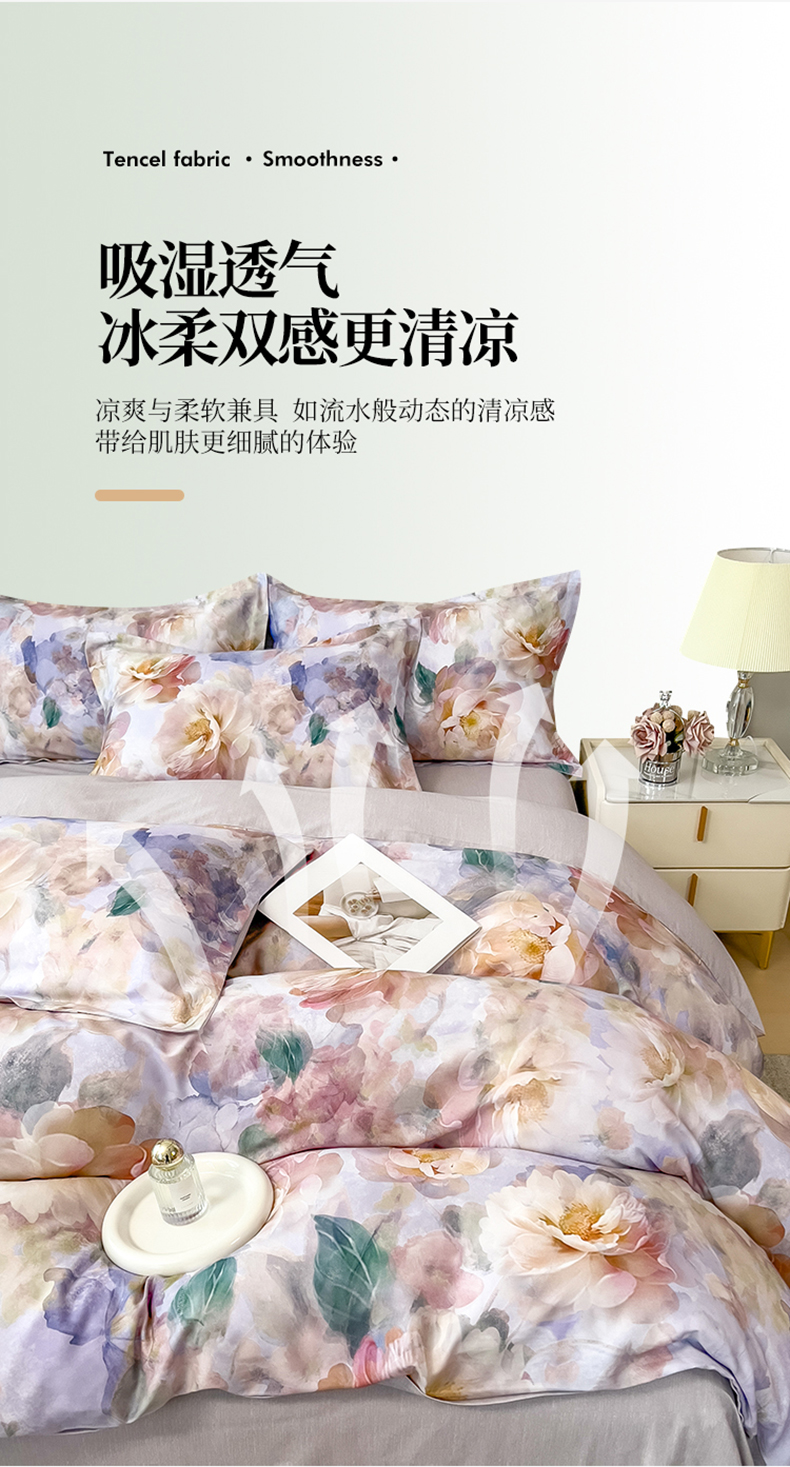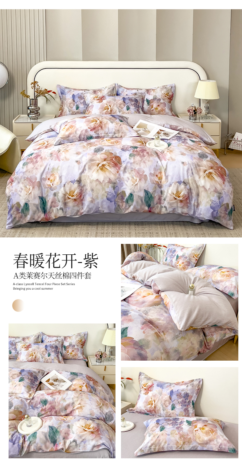 商品名称:芃成家纺 2025新款A类莱赛尔天丝棉四件套 春暖花开-紫