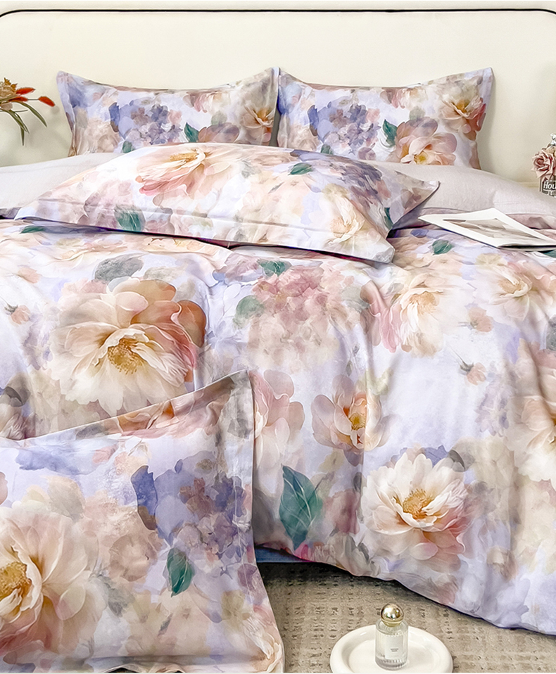 芃成家纺 2025新款A类莱赛尔天丝棉四件套 春暖花开-紫