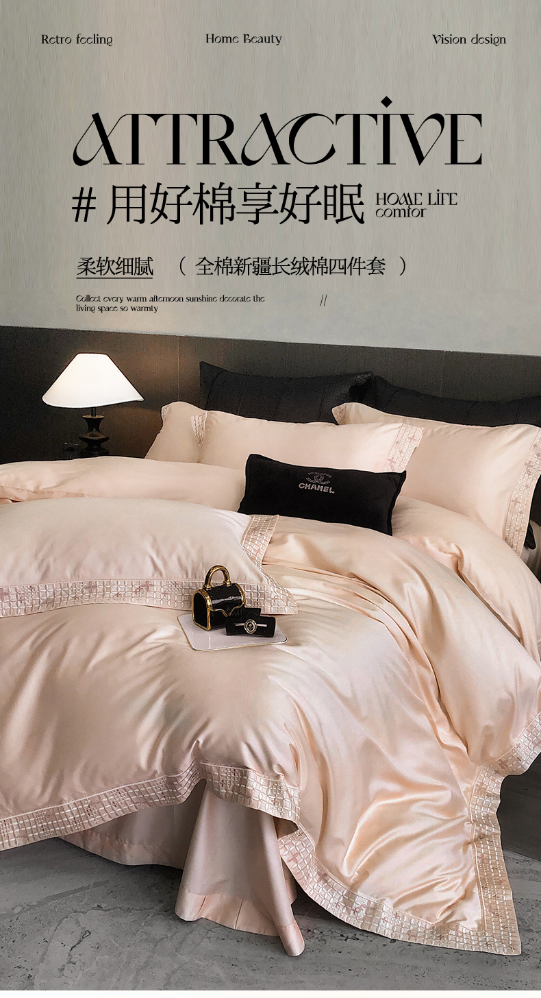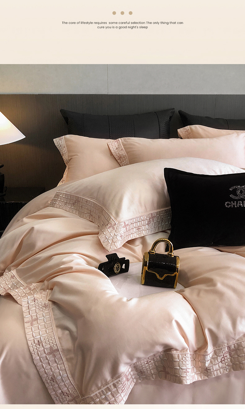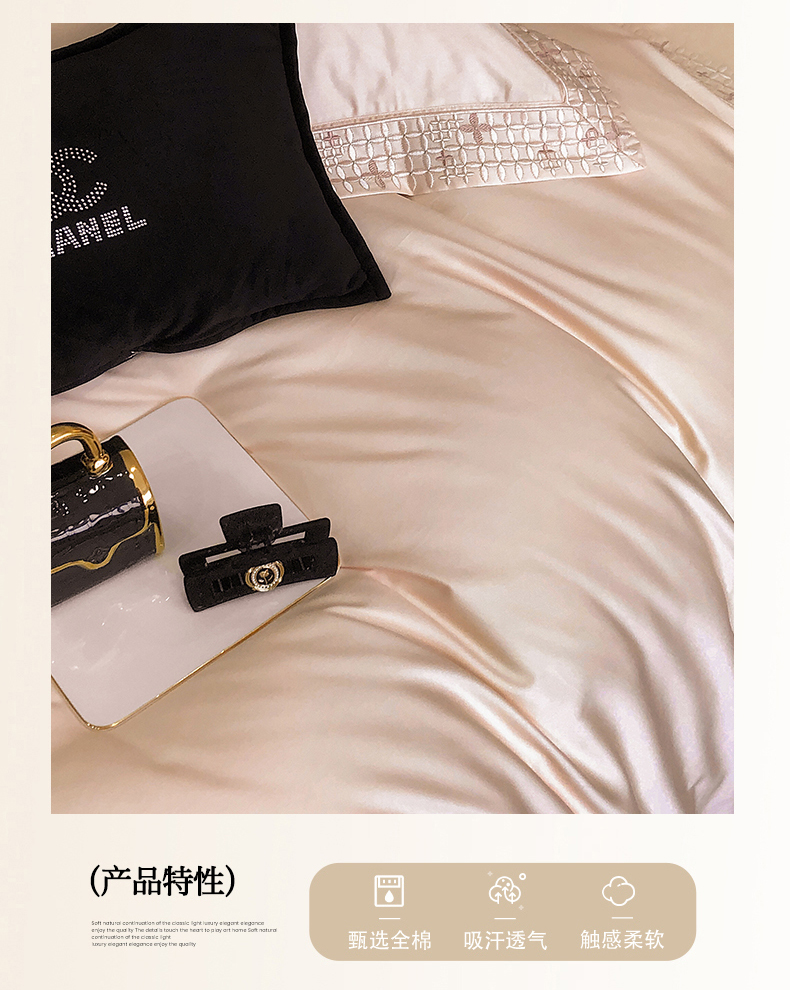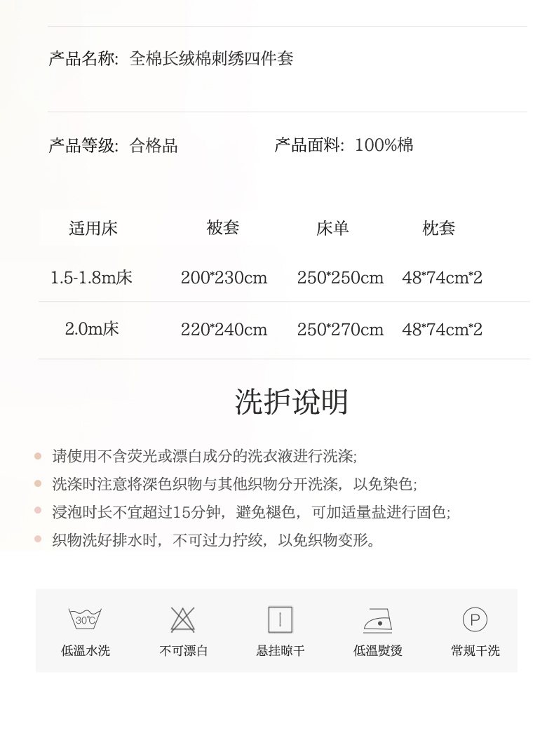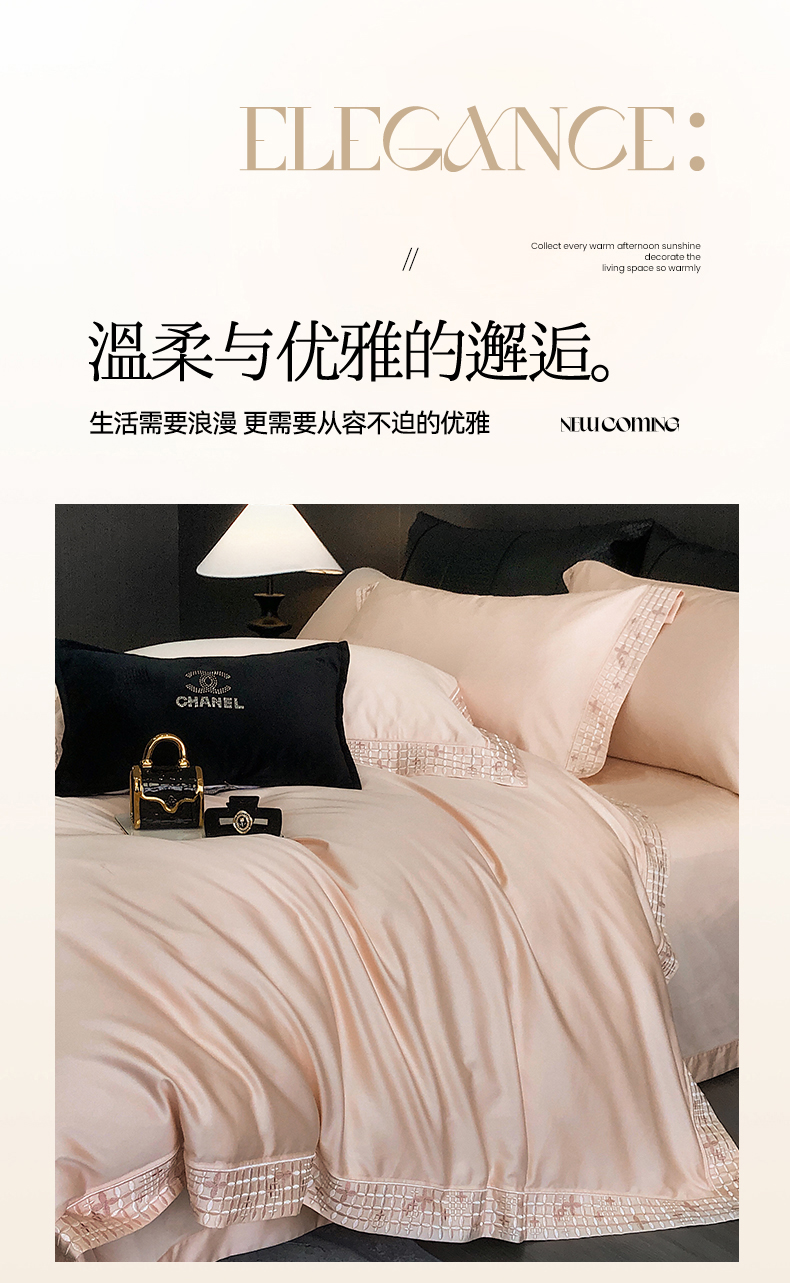 商品名称:保罗圣迪奥 2025新款简约款全棉长绒棉四件套—星阑 星阑-玉色