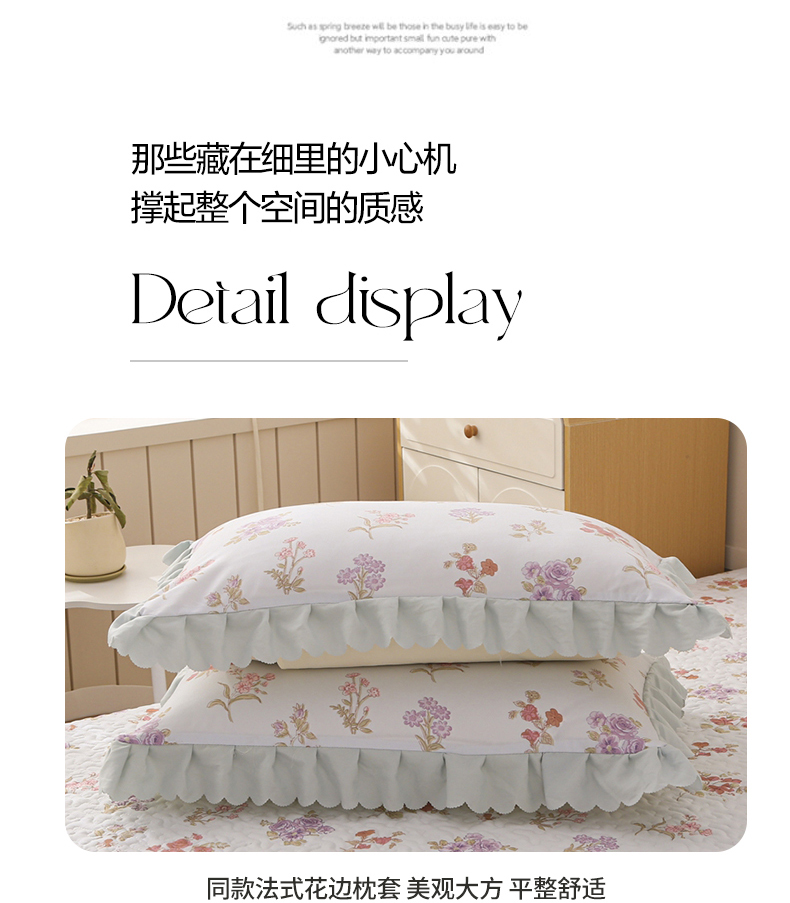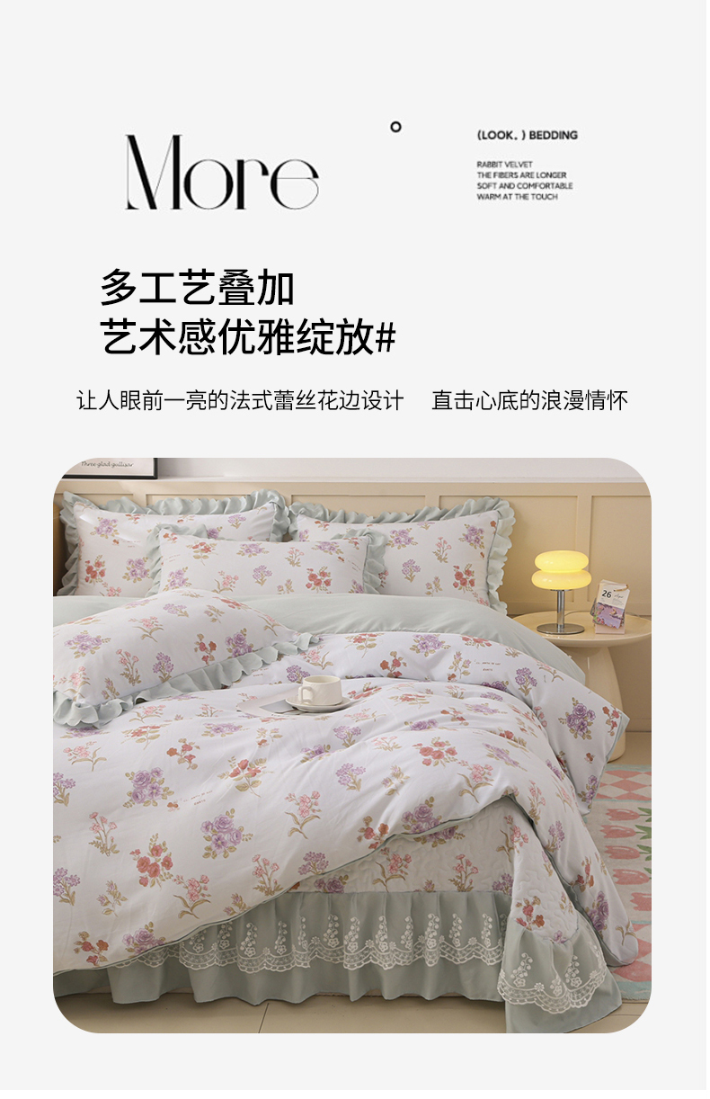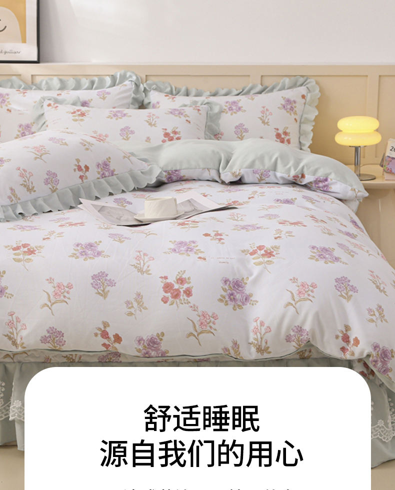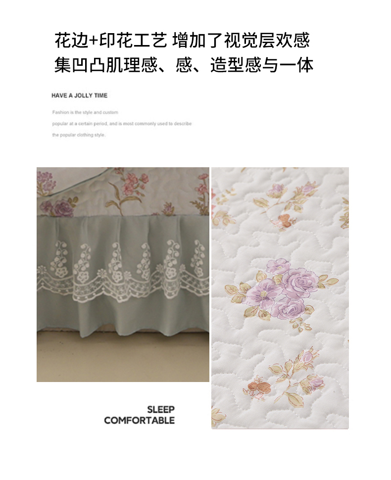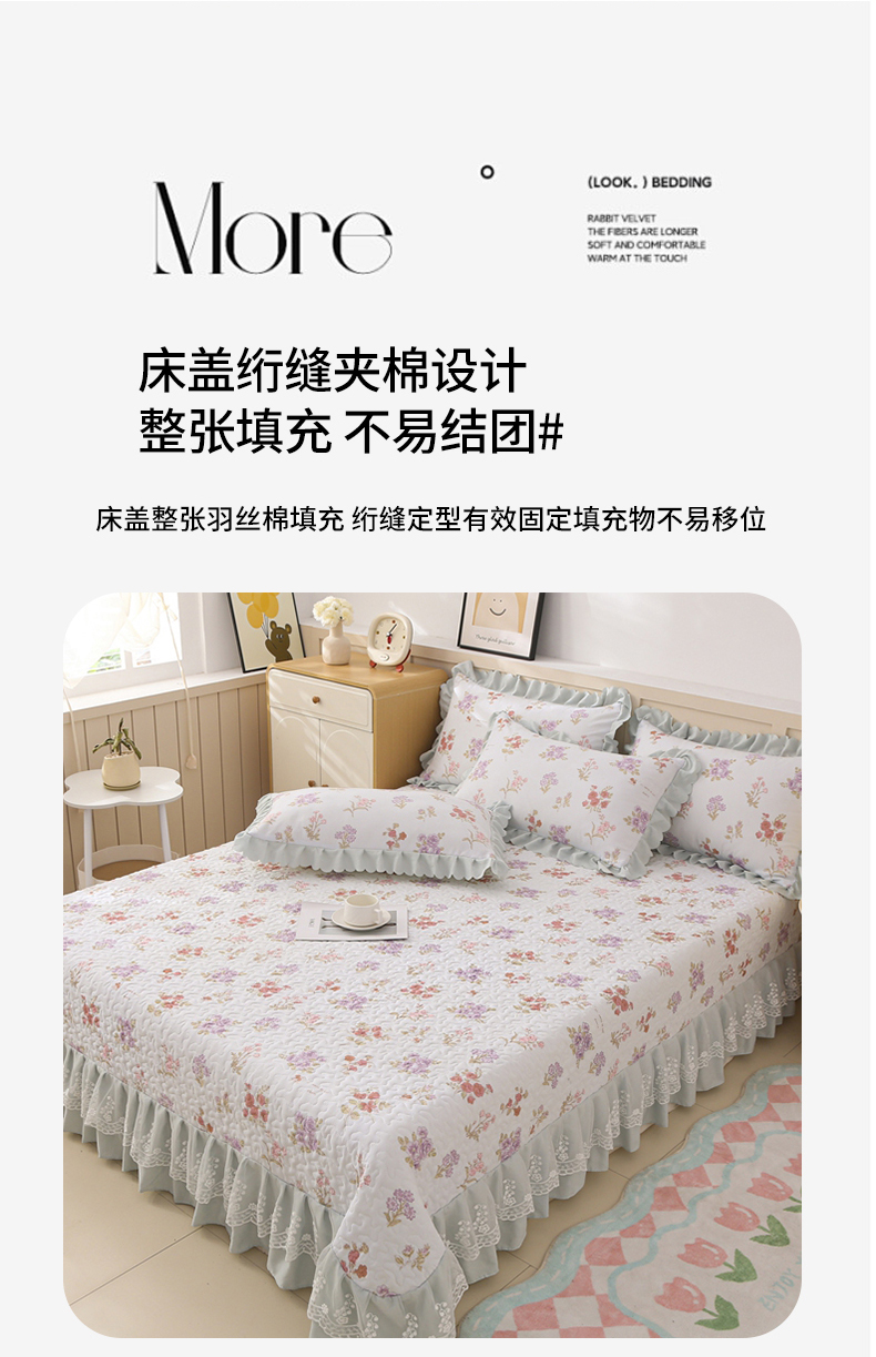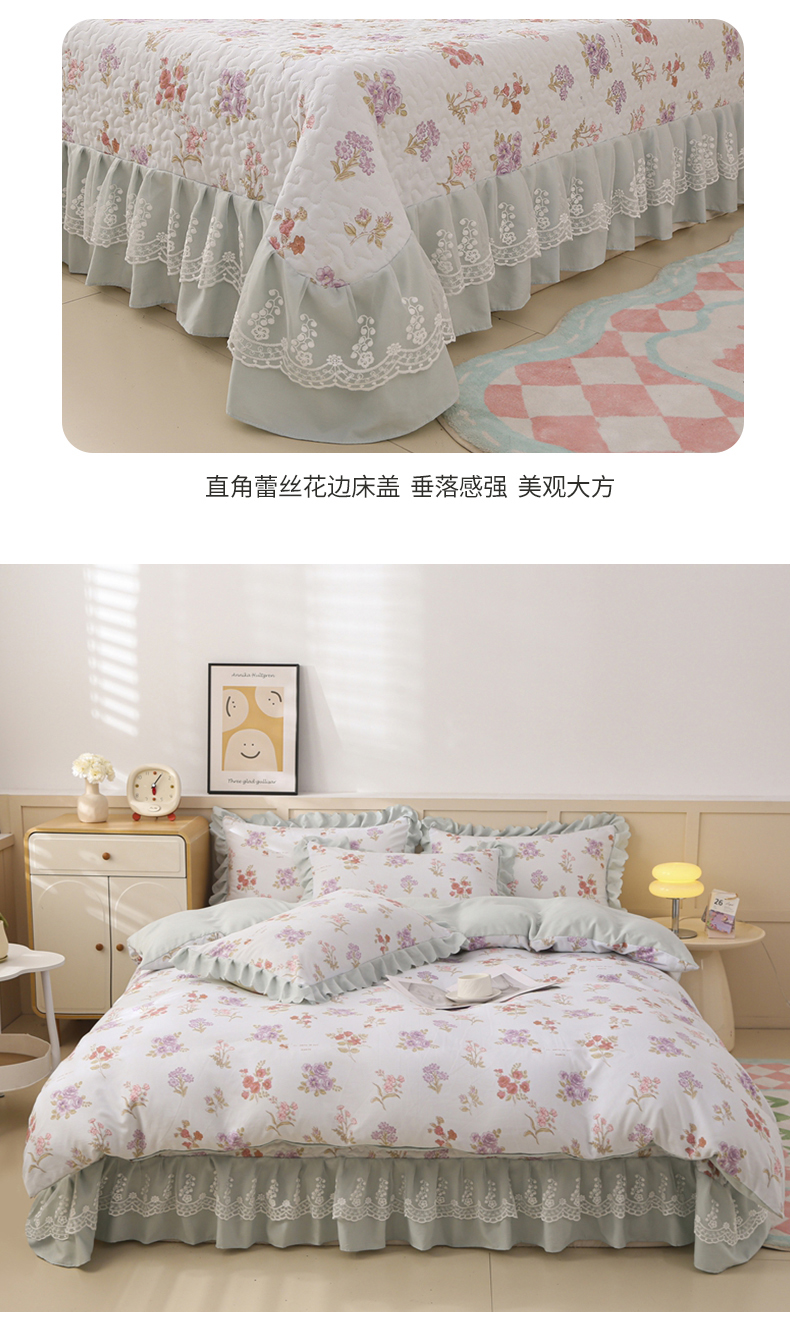 当前位置: 91家纺网 > 商品网购 > 床品套件 > 四件套 > 磨毛活性四件套 > 铠畅 2025新款法式花边云朵棉床盖款夏被四件套 花海