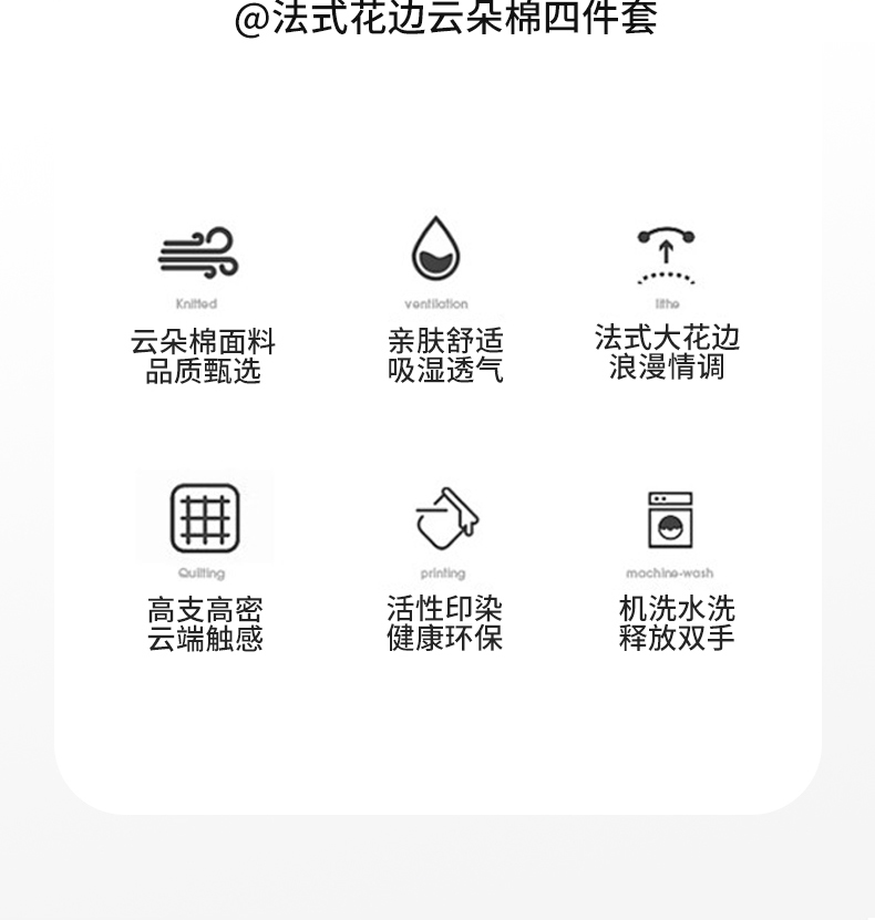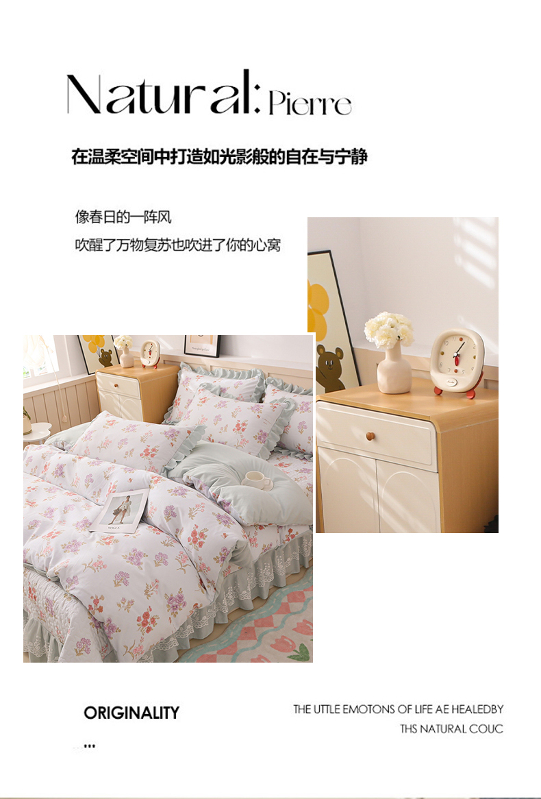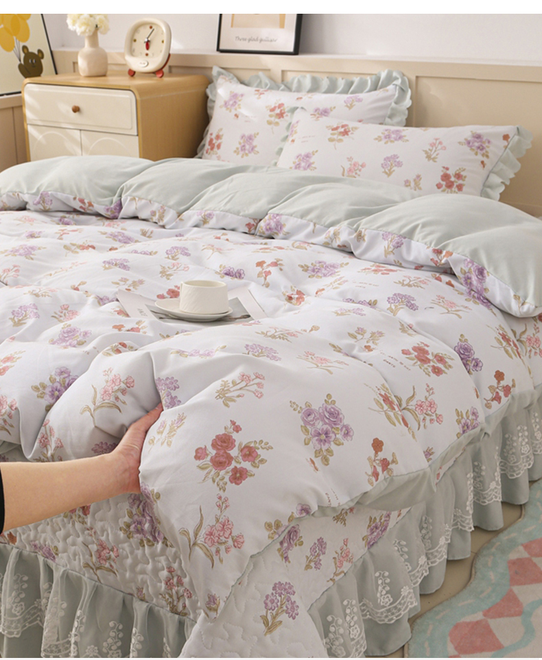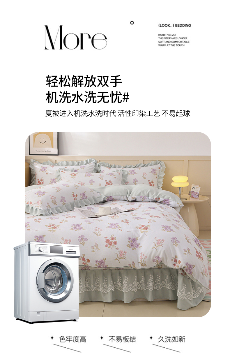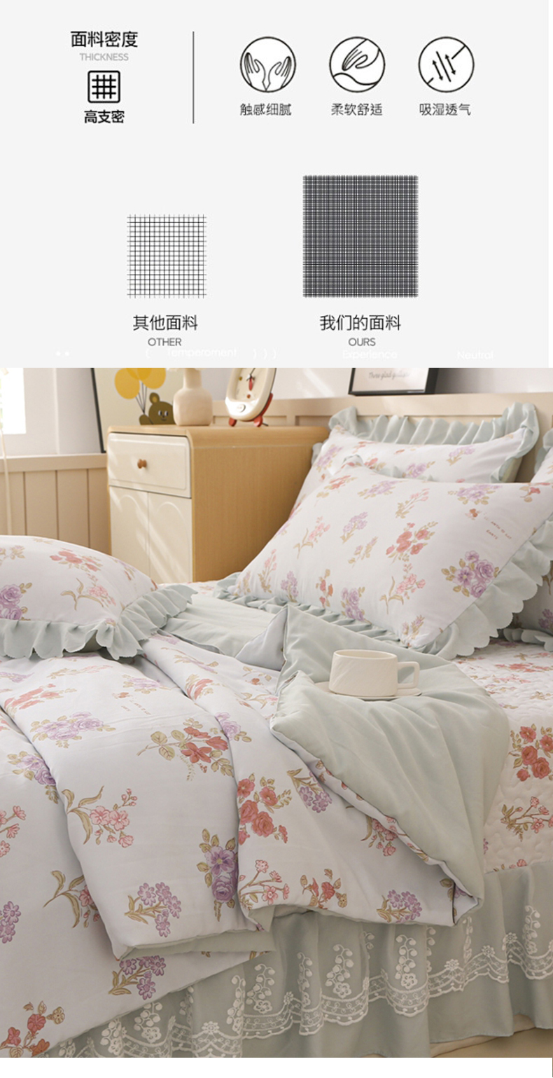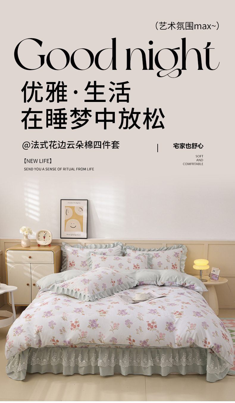 当前位置: 91家纺网 > 商品网购 > 床品套件 > 四件套 > 磨毛活性四件套 > 铠畅 2025新款法式花边云朵棉床盖款夏被四件套 花海