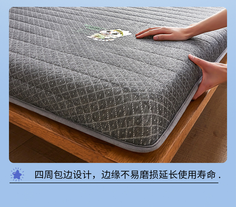 • 91家纺网 家纺一手货源 找家纺 优承佳生活馆(床垫) 2025新款可爱猫单边硬质棉床垫 针织单边款-灰-菱形格