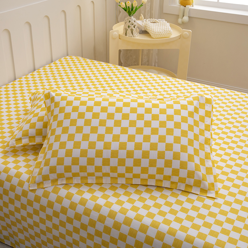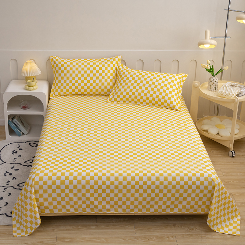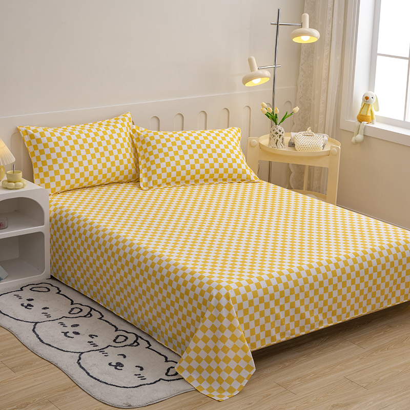 • 91家纺网 家纺一手货源 找家纺 馨乐家纺 2025新款亲肤印花芦荟棉单品床单第二批 棋盘格-黄