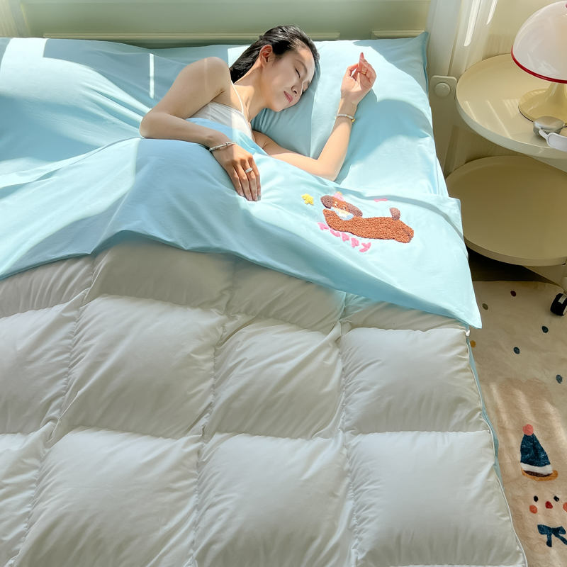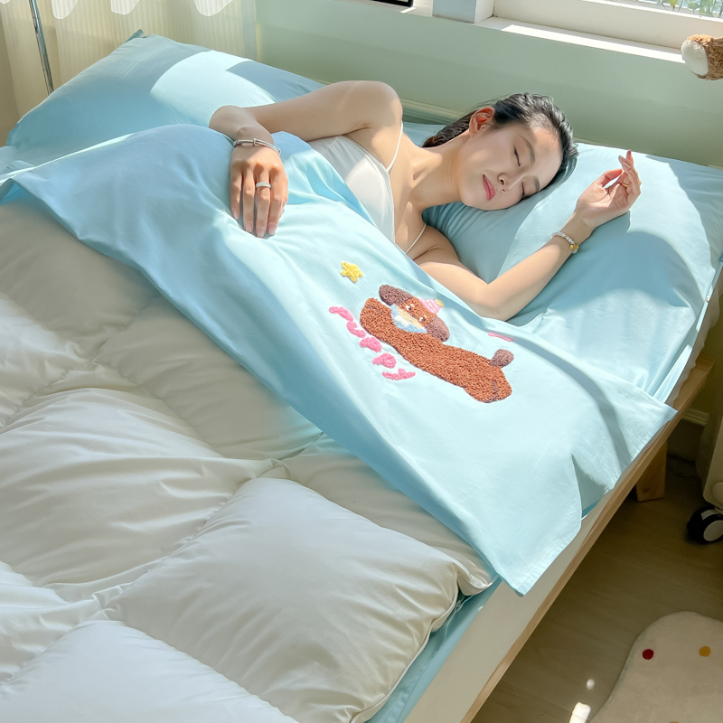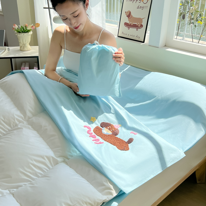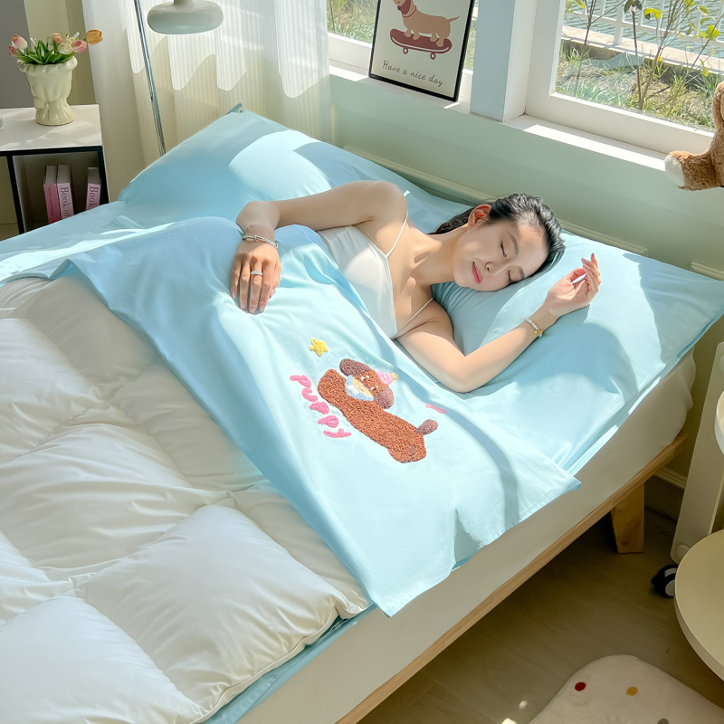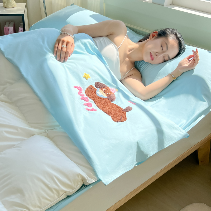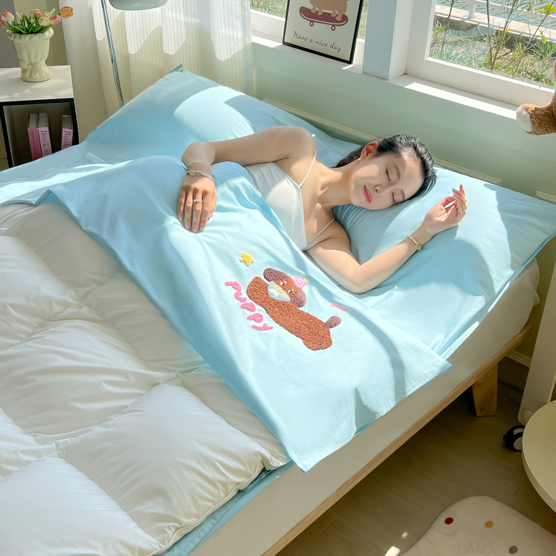 (总)柒星睡袋 2025新款a类水洗毛巾绣一次性隔脏睡袋,巴萨熊蓝,巴萨熊浅粉,巴萨熊紫,布布米白,布布浅粉,布布紫,腊肠狗米白,腊肠狗浅灰,腊肠狗驼色,小新豆绿,小新蓝,小新浅灰