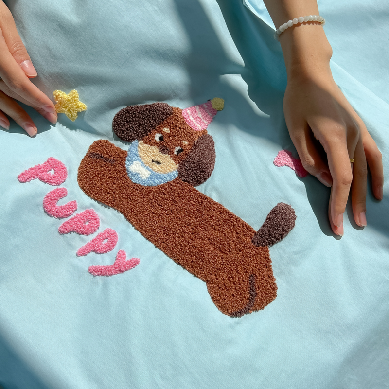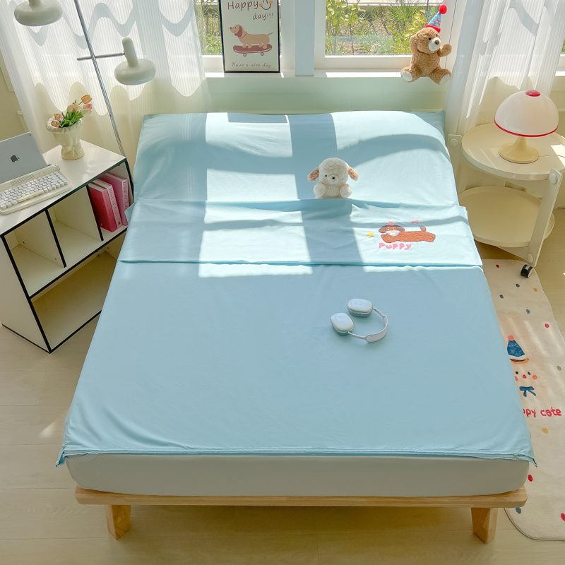 柒星睡袋 2025新款款40支全棉纯色毛巾绣可拆分隔脏睡袋 帕皮狗 蓝