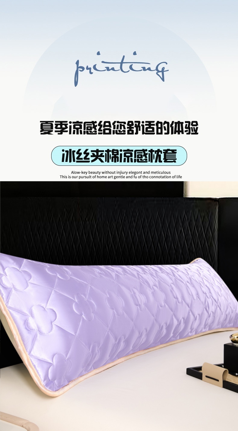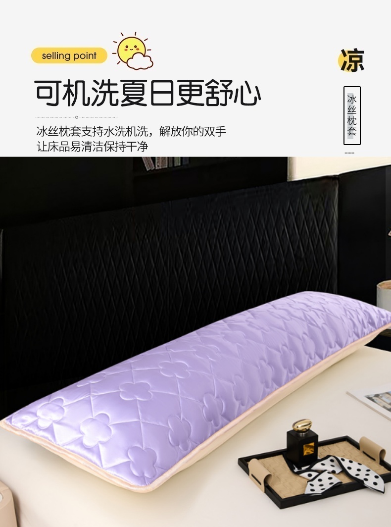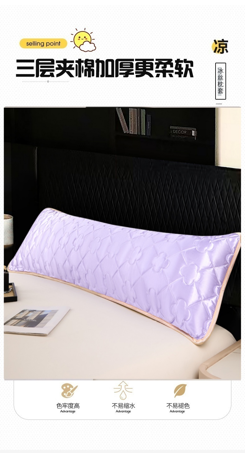商品名称:梦舒羽 2025新款夏季冰丝凉感夹棉枕套双人情侣枕头套加长加厚枕芯套1.5m内胆套 夹棉加厚-雪青色