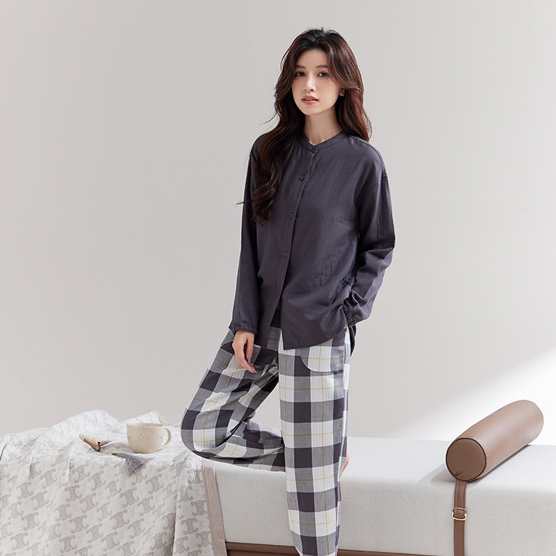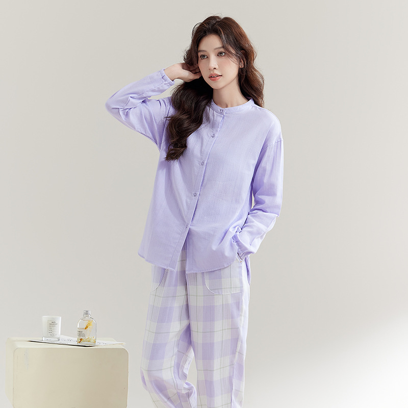良品汇馆纯棉双层纱情侣居家服 国潮风女款紫