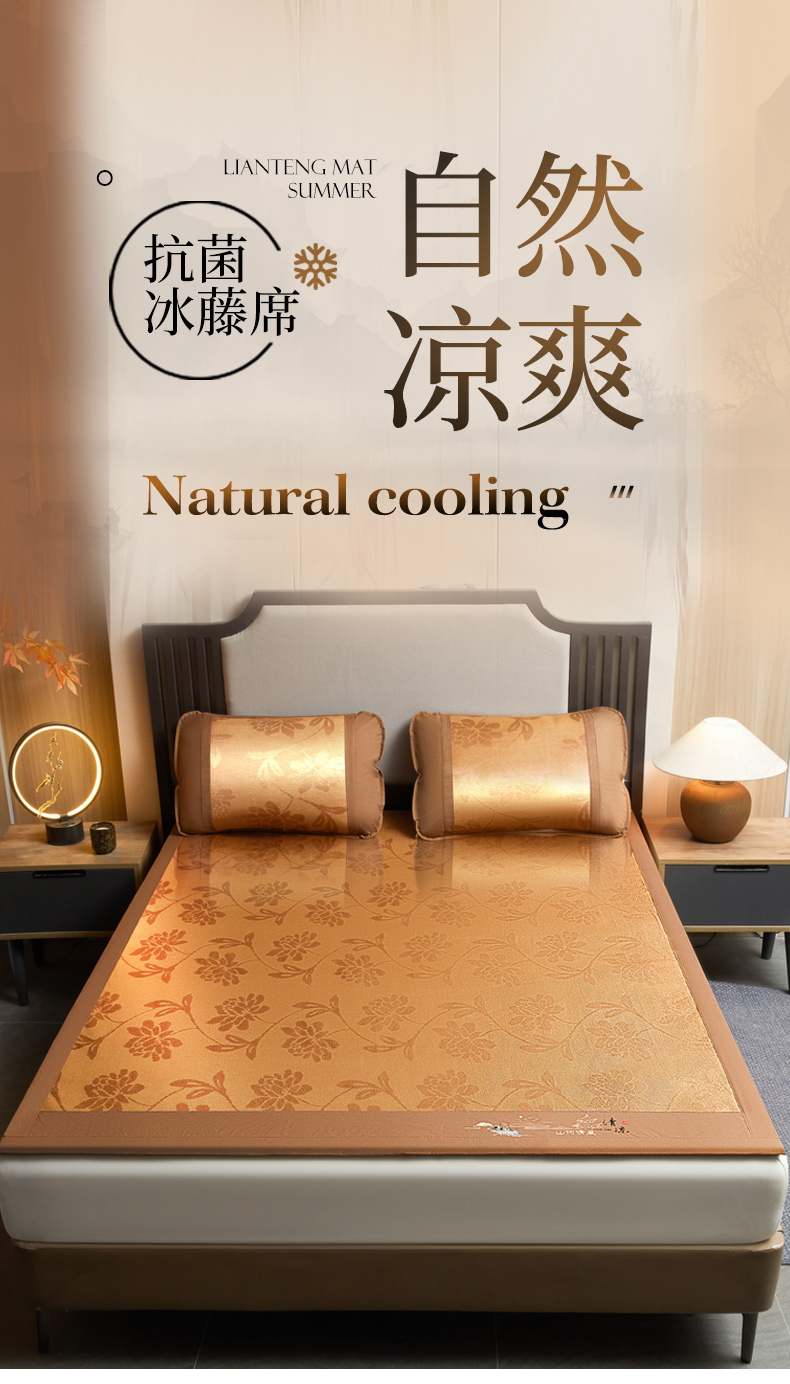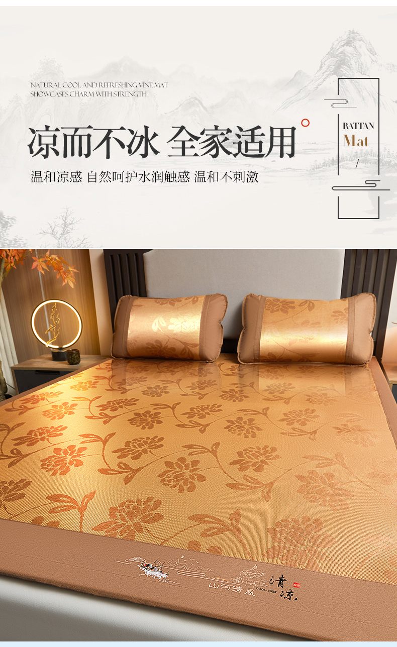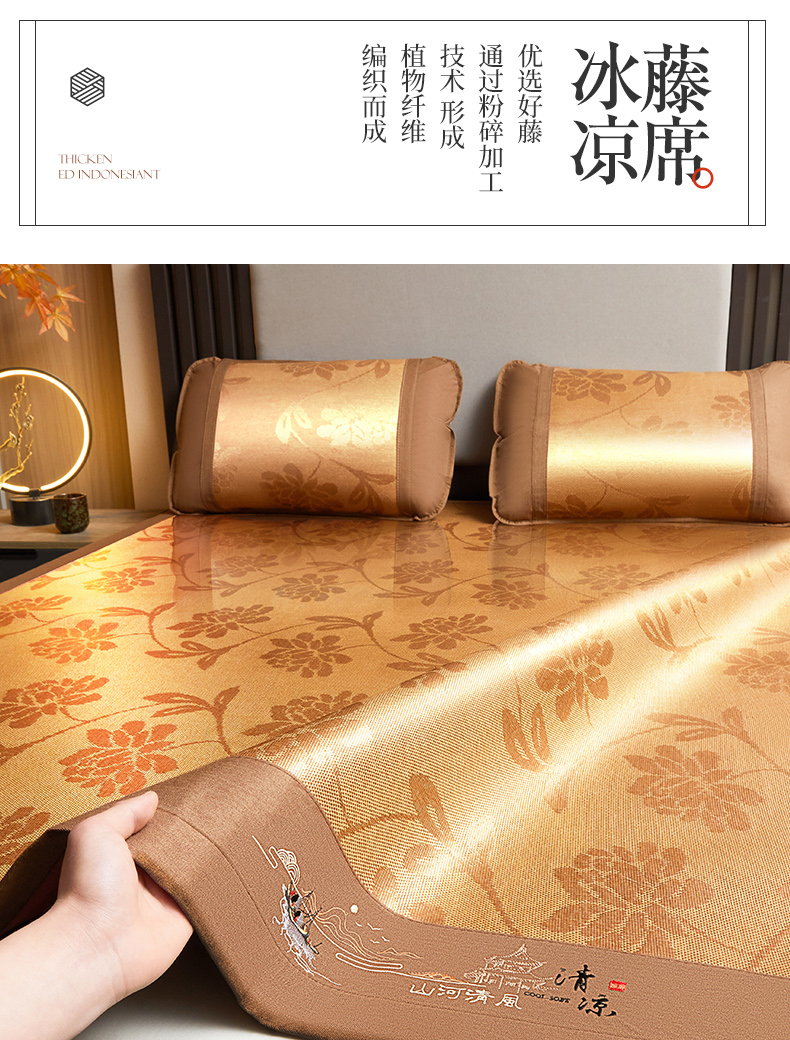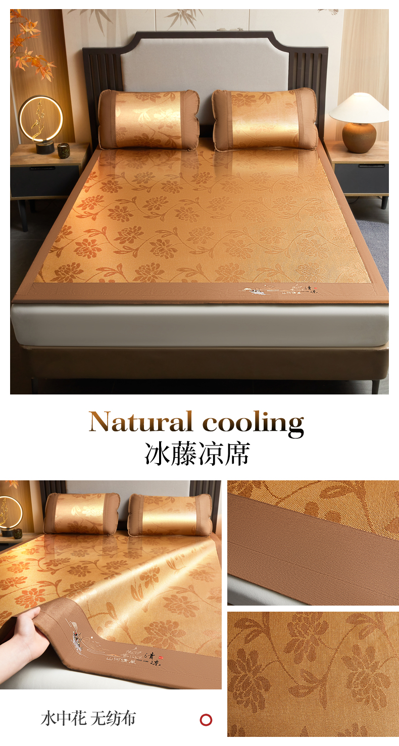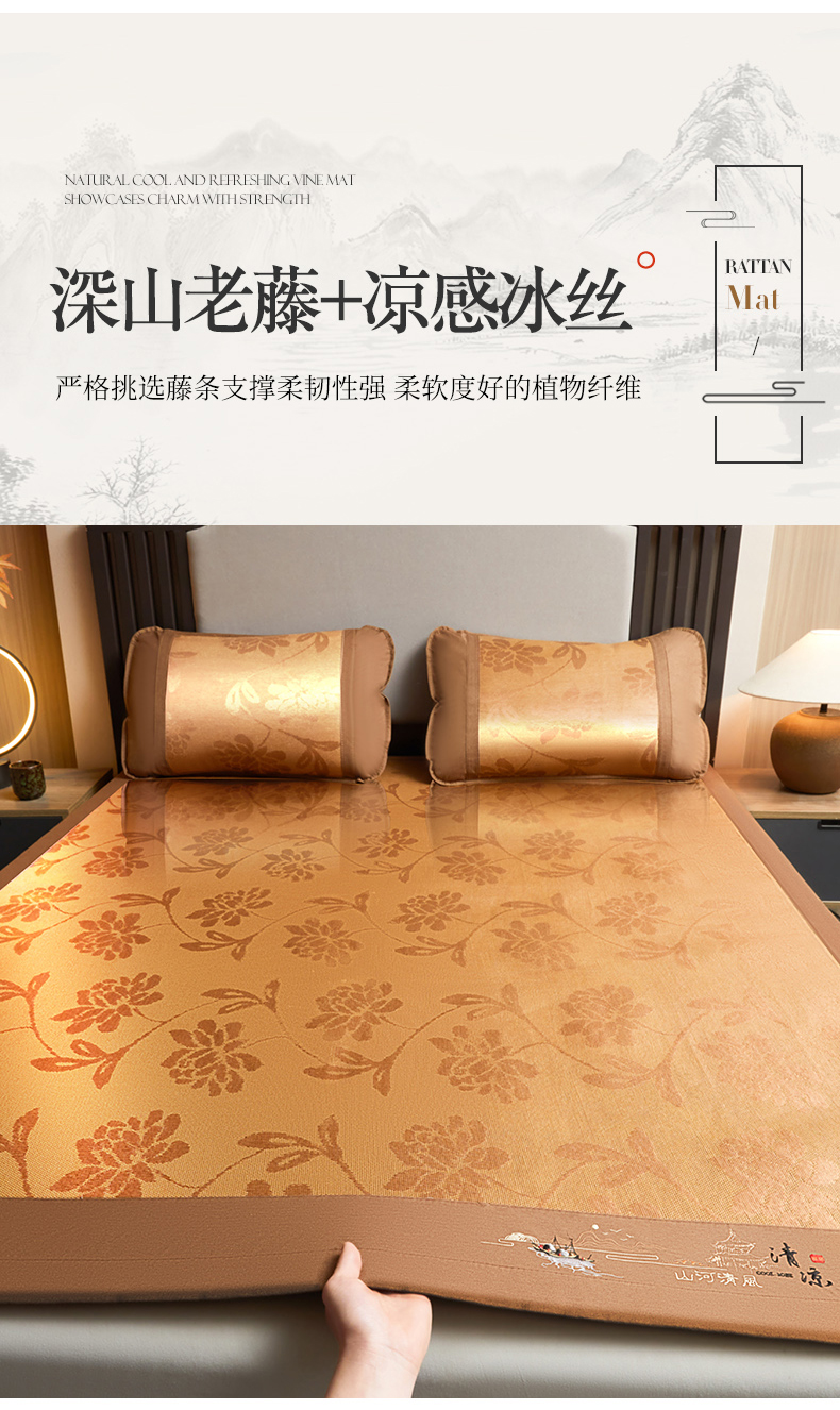 商品名称:2025新款山河清风冰藤席三明治款 清风花禧 无纺布