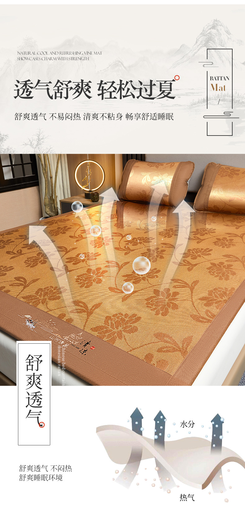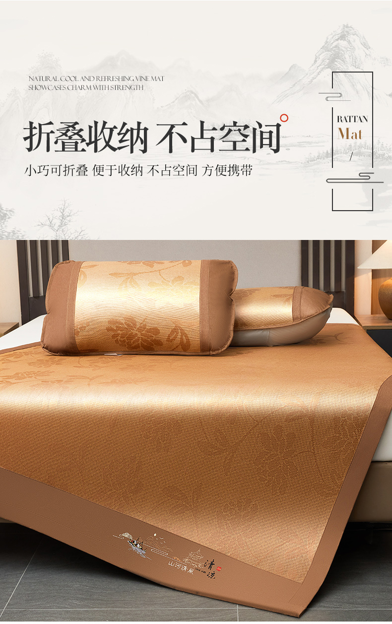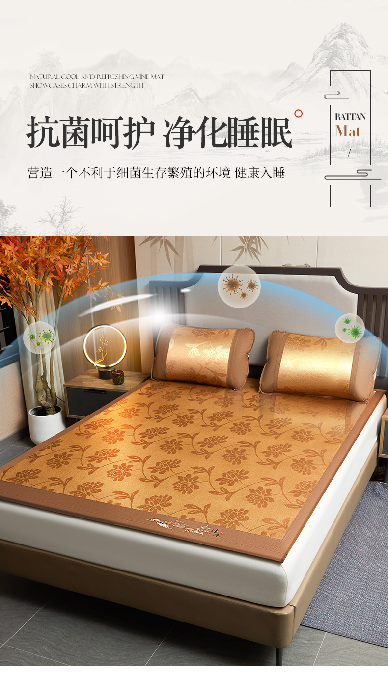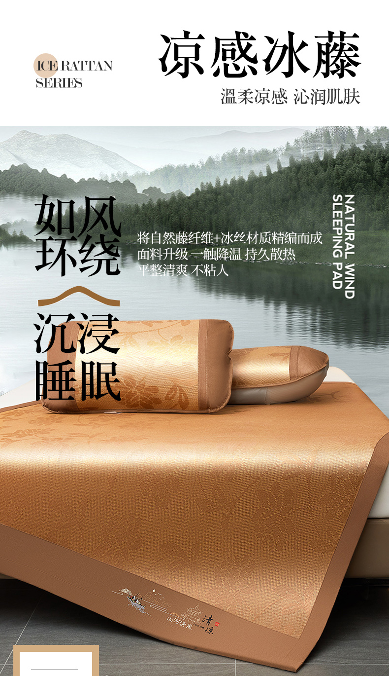 商品名称:2025新款山河清风冰藤席三明治款 清风花禧 无纺布