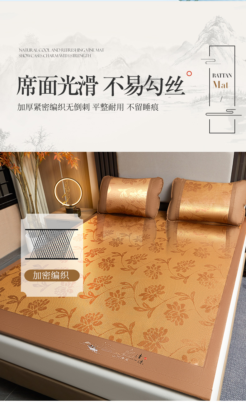 (总)航途席业 2025新款山河清风冰藤席三明治款,清风古典 三明治,清风古典 无纺布,清风深棕 三明治,清风花禧 三明治,清风花禧 无纺布,清风深棕-无纺布